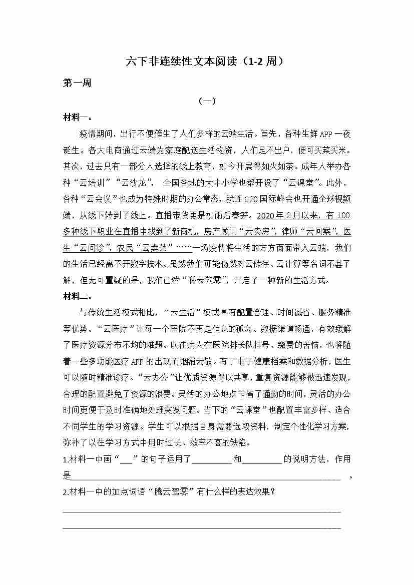 六(下)语文非连续性文本阅读集训专练篇(Word版共32页)