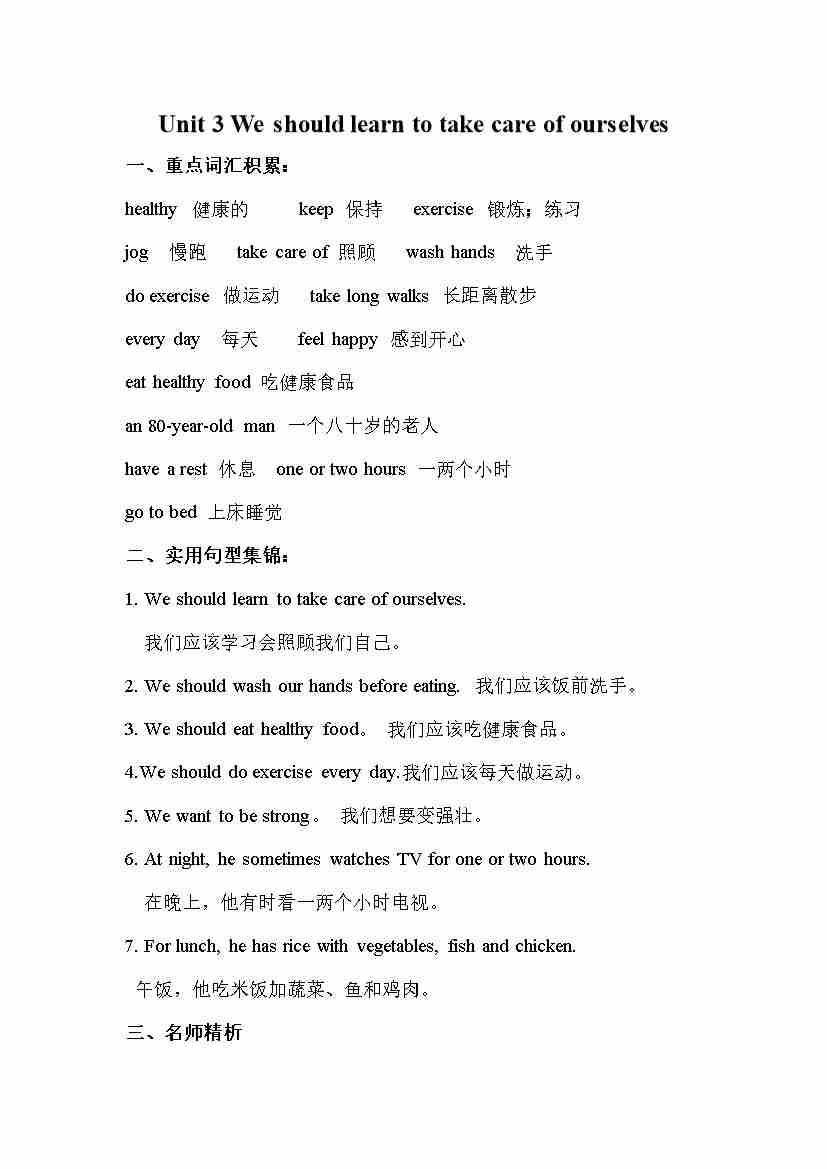 Unit 3 We should learn to take care of ourselves