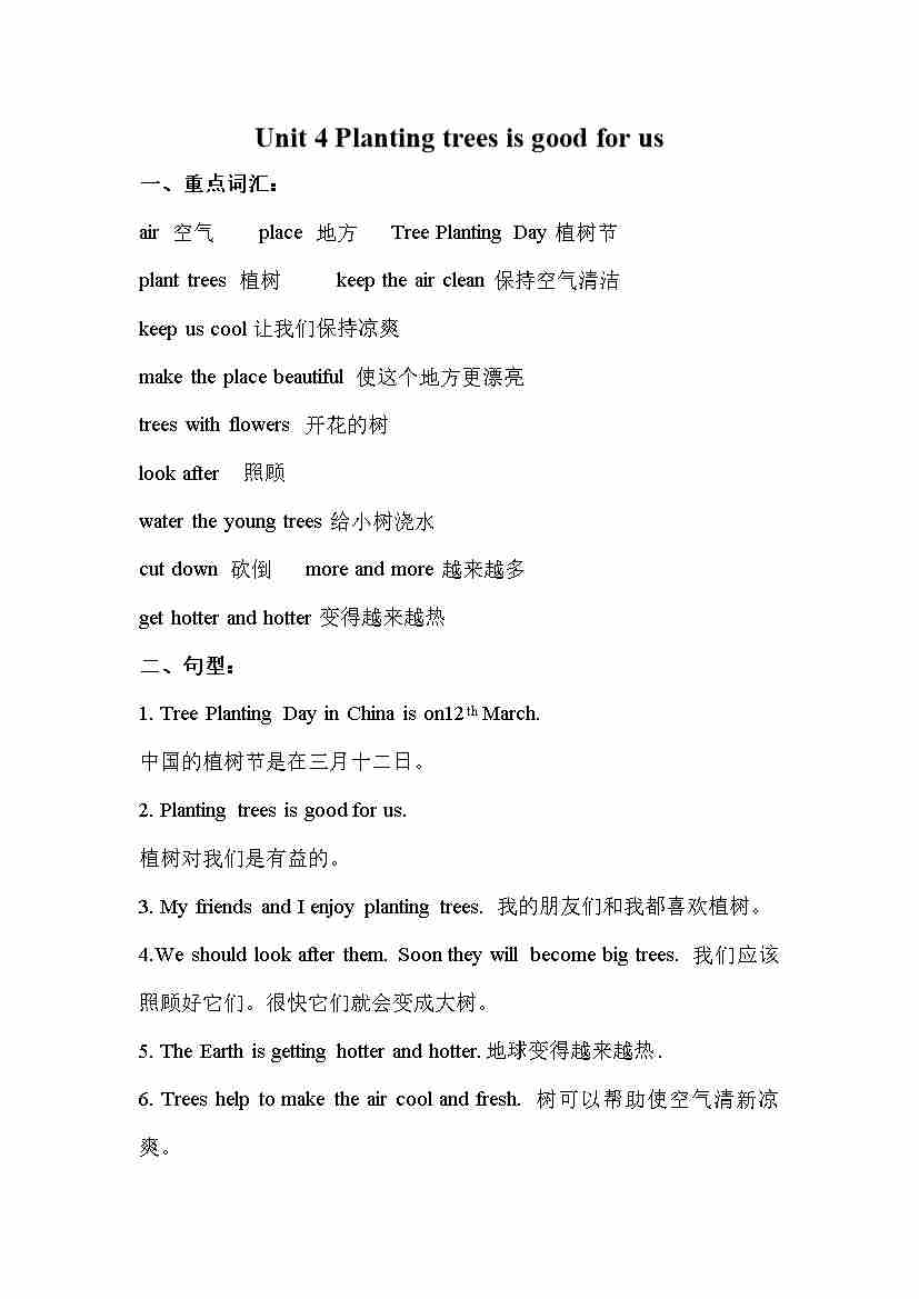 Unit 4 Planting trees is good for us