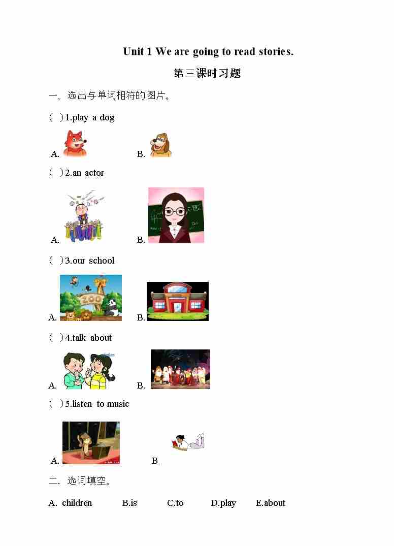 五年级下册英语一课一练- Unit 1 We are going to read stories 第三课时 湘少版(三起)(word 版,含答案)