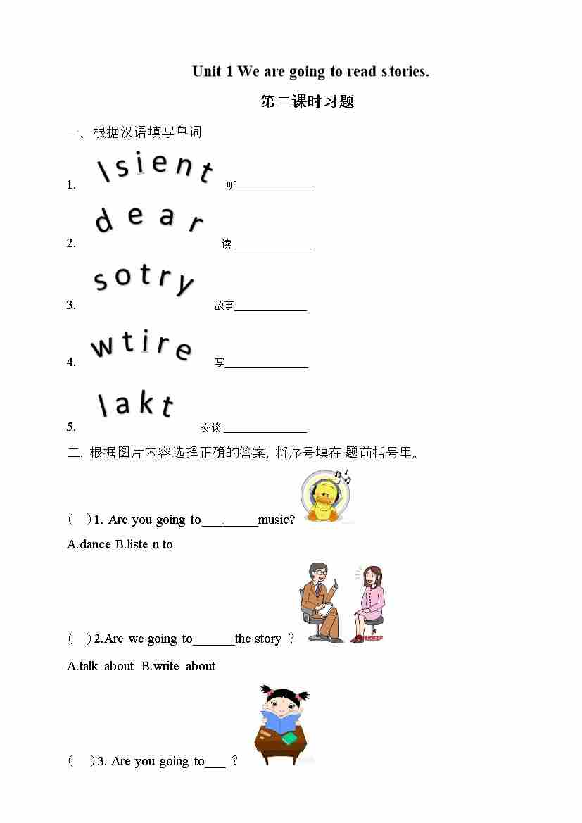五年级下册英语一课一练- Unit 1 We are going to read stories 第二课时 湘少版(三起)(word 版,含答案)