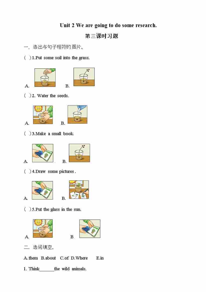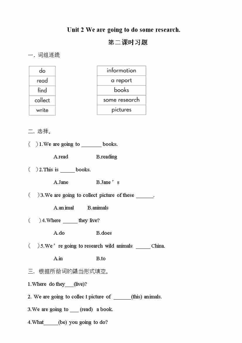 五年级下册英语一课一练- Unit 2 We are going to do some research 第二课时 湘少版(三起)(word 版,含答案)