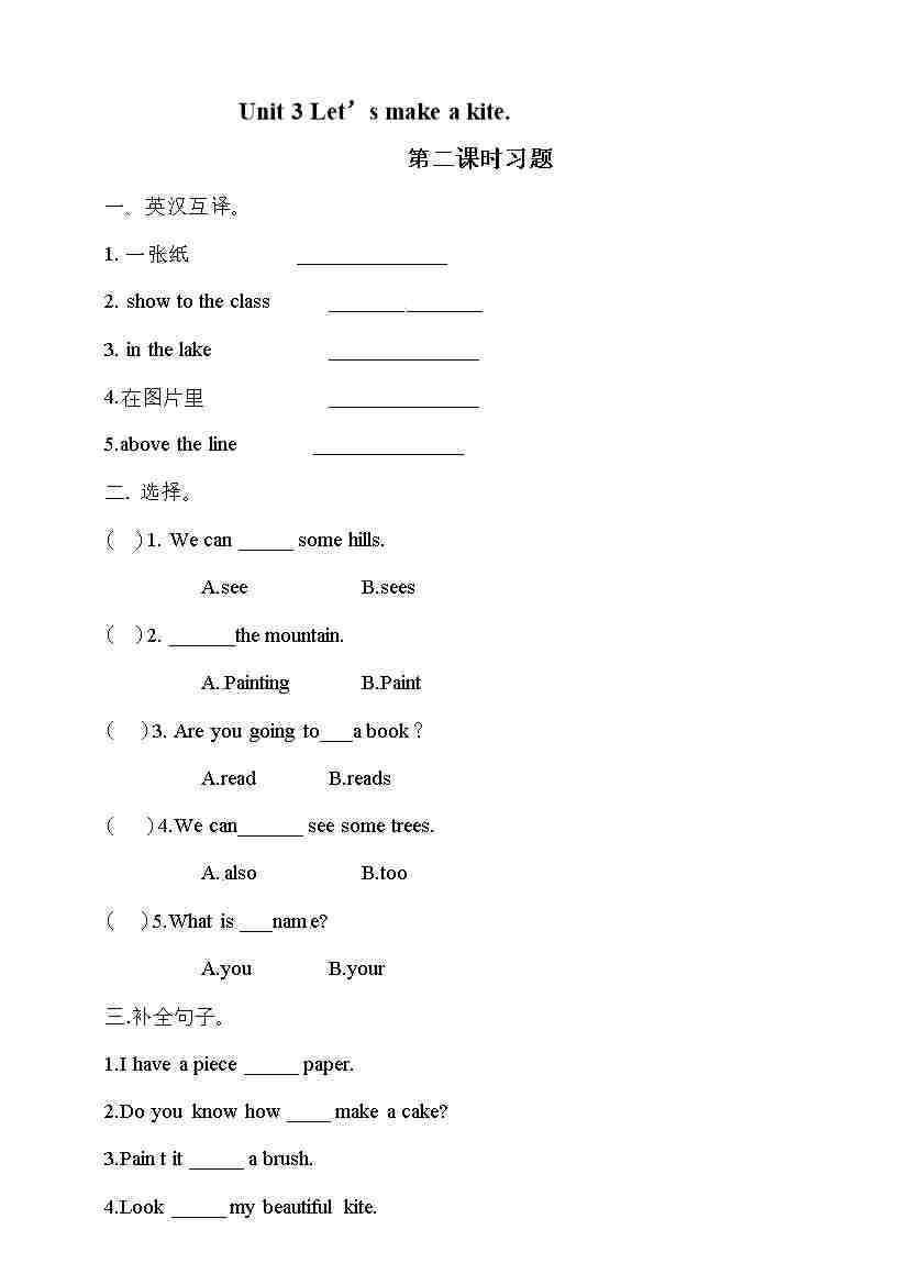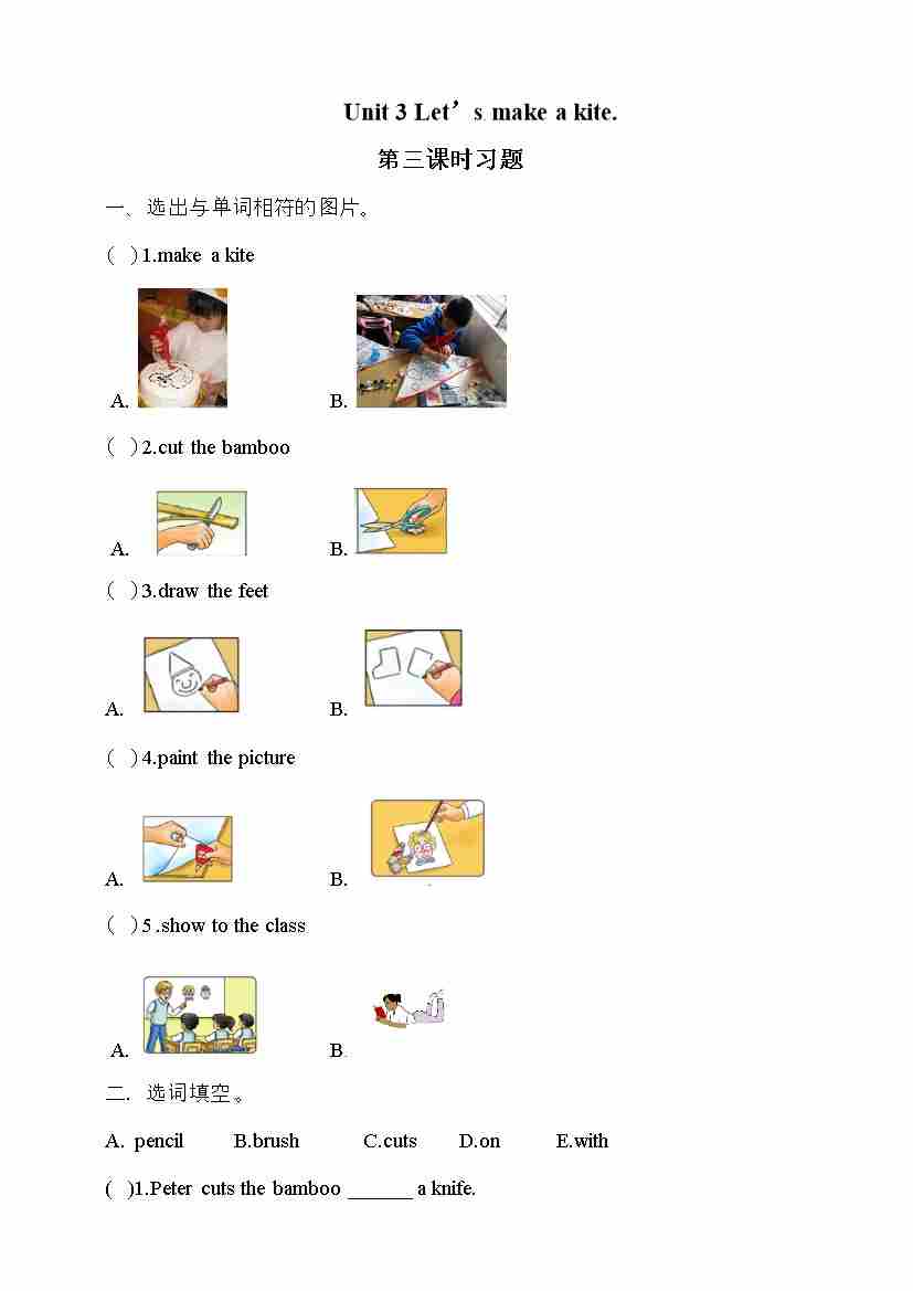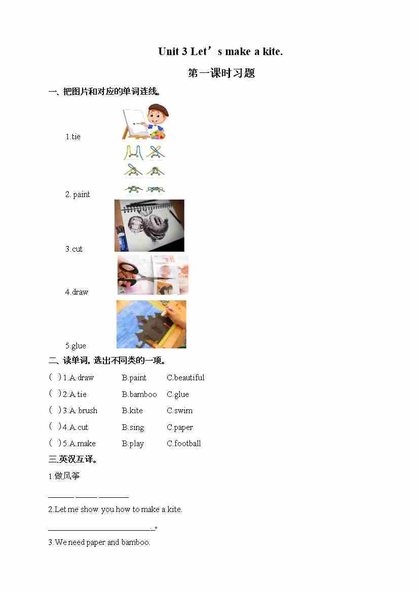 五年级下册英语一课一练- Unit 3 Let's make a kite 第一课时 湘少版(三起)(word 版,含答案)