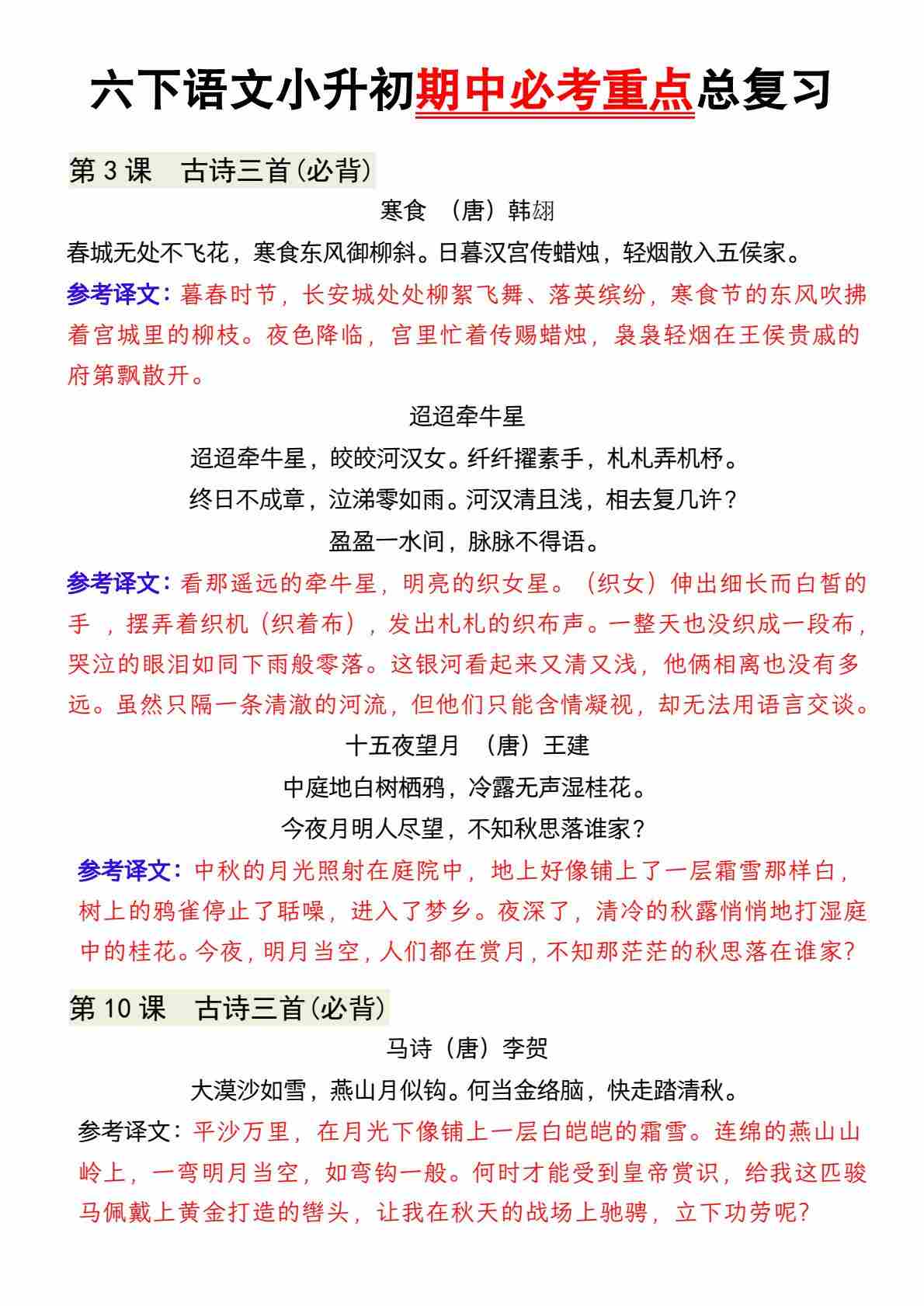 【期中冲刺复习-教材课文积累与应用】六下语文