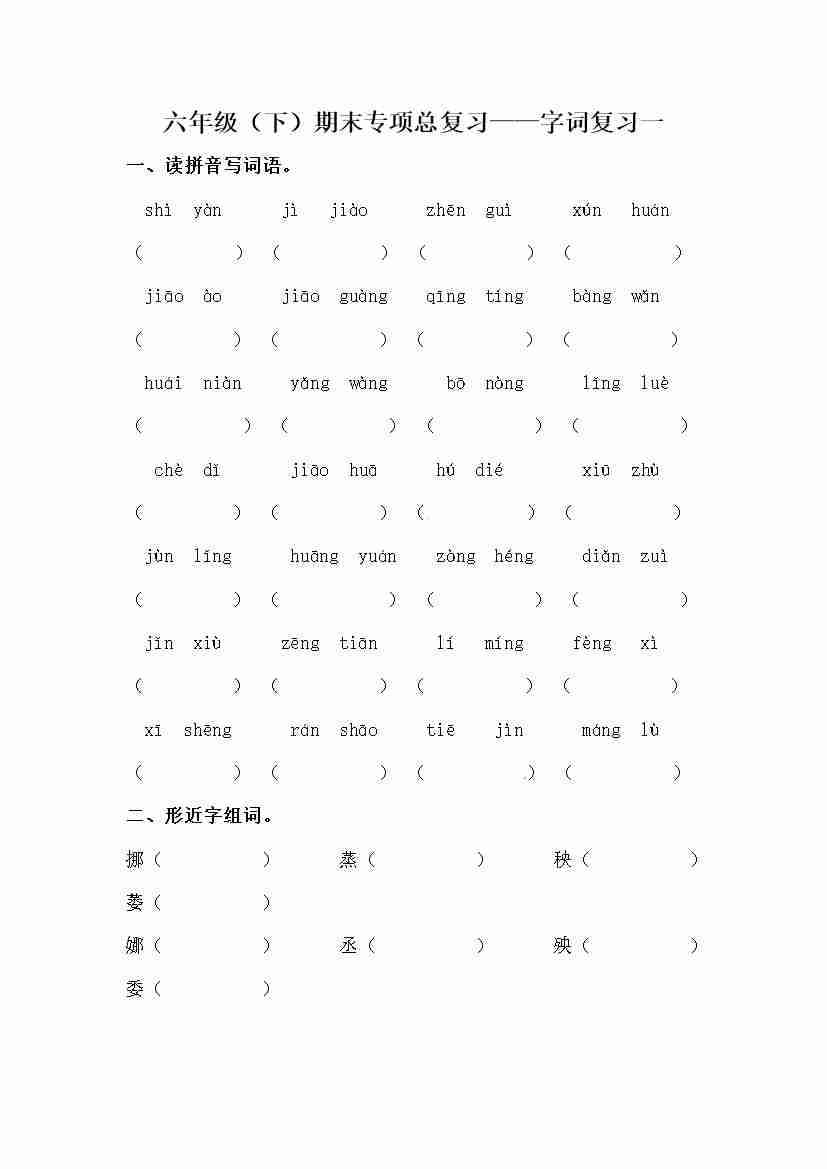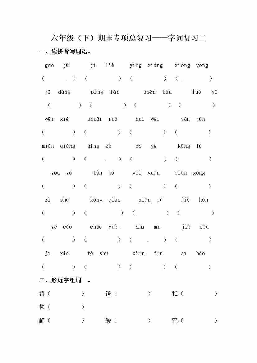 【期末类型题复习 字词复习二(含答案)】六下语文