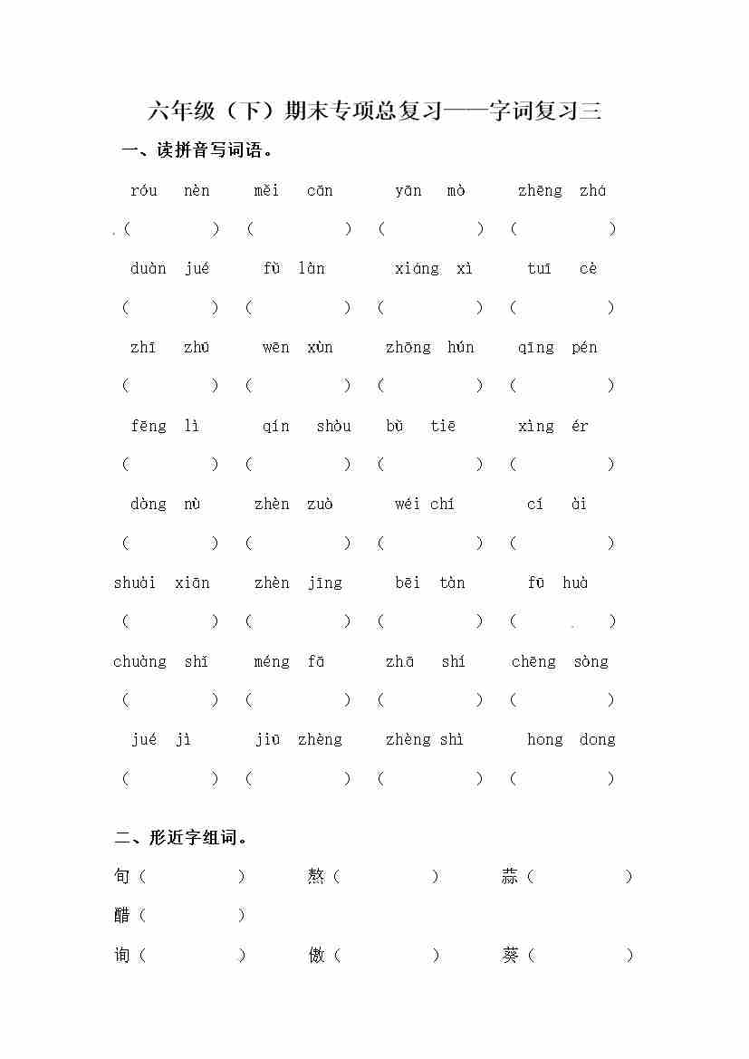 【期末类型题复习 字词复习三(含答案)】六下语文