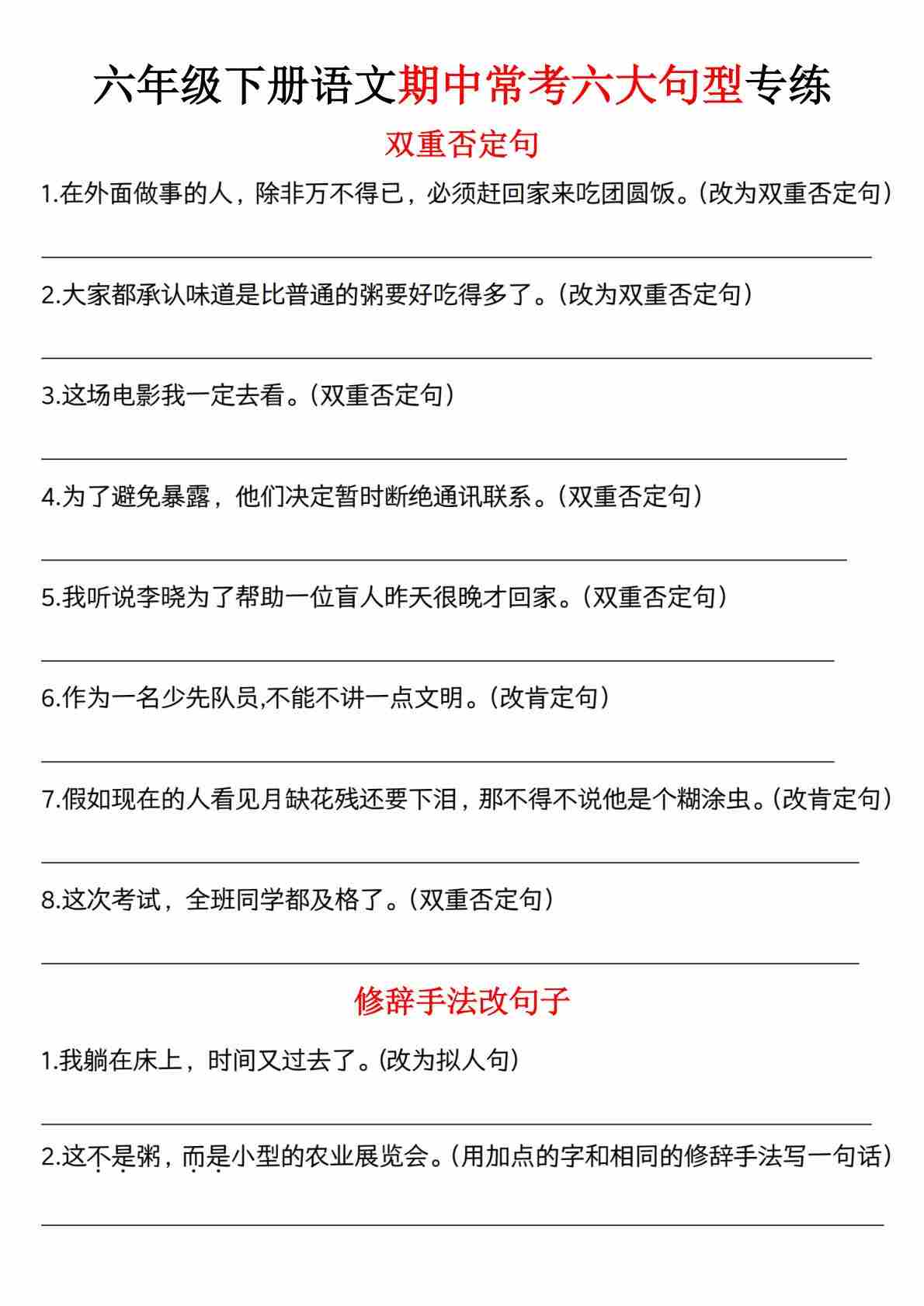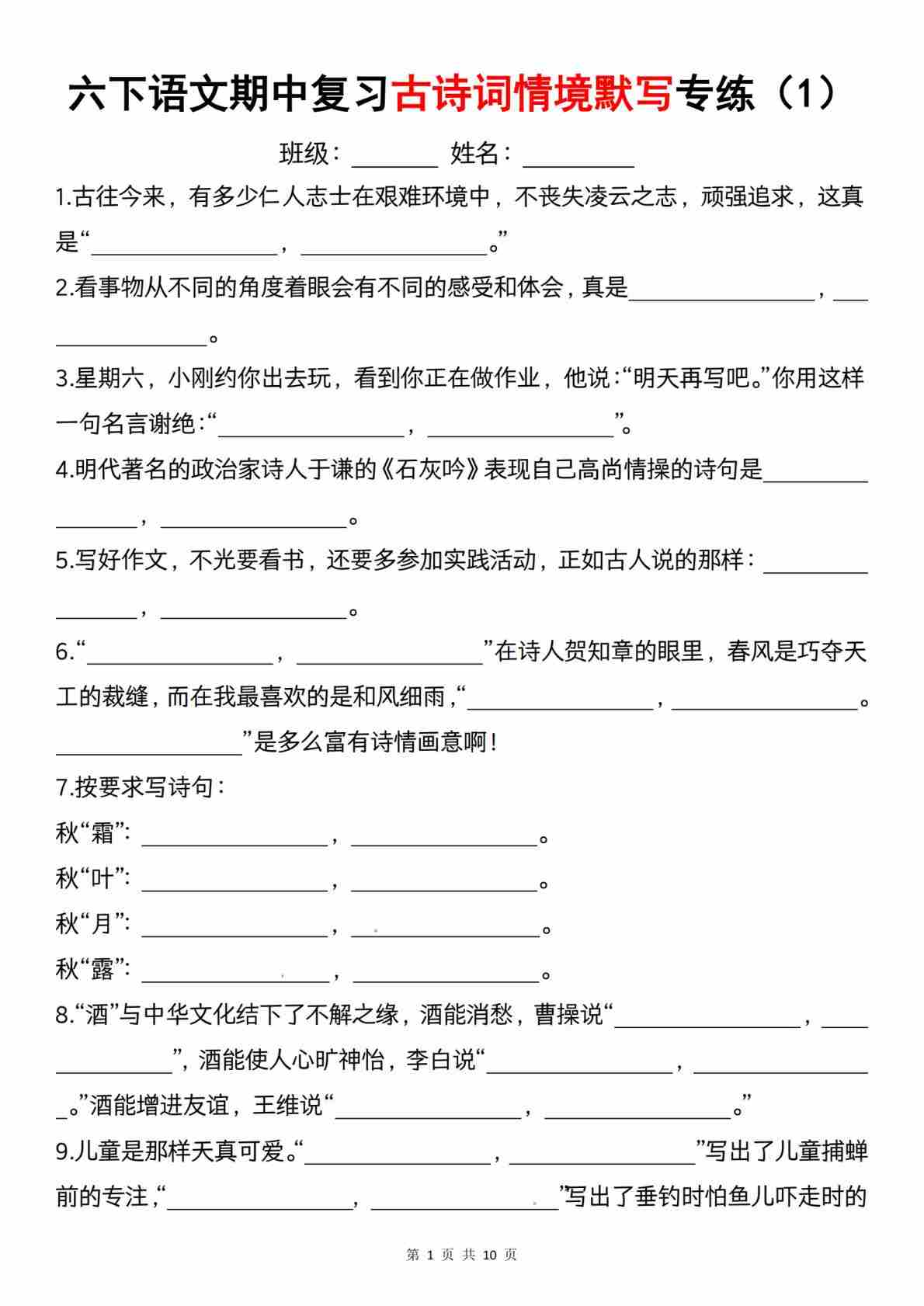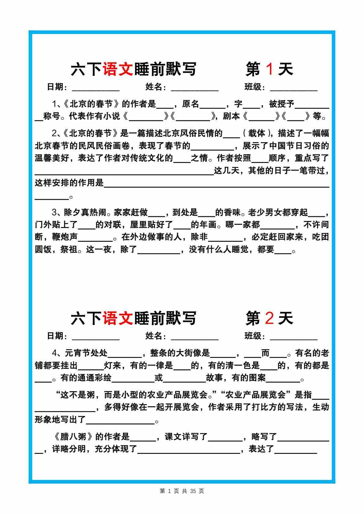 【按课文内容填空及知识拓展(期末、期中易考)】六下语文
