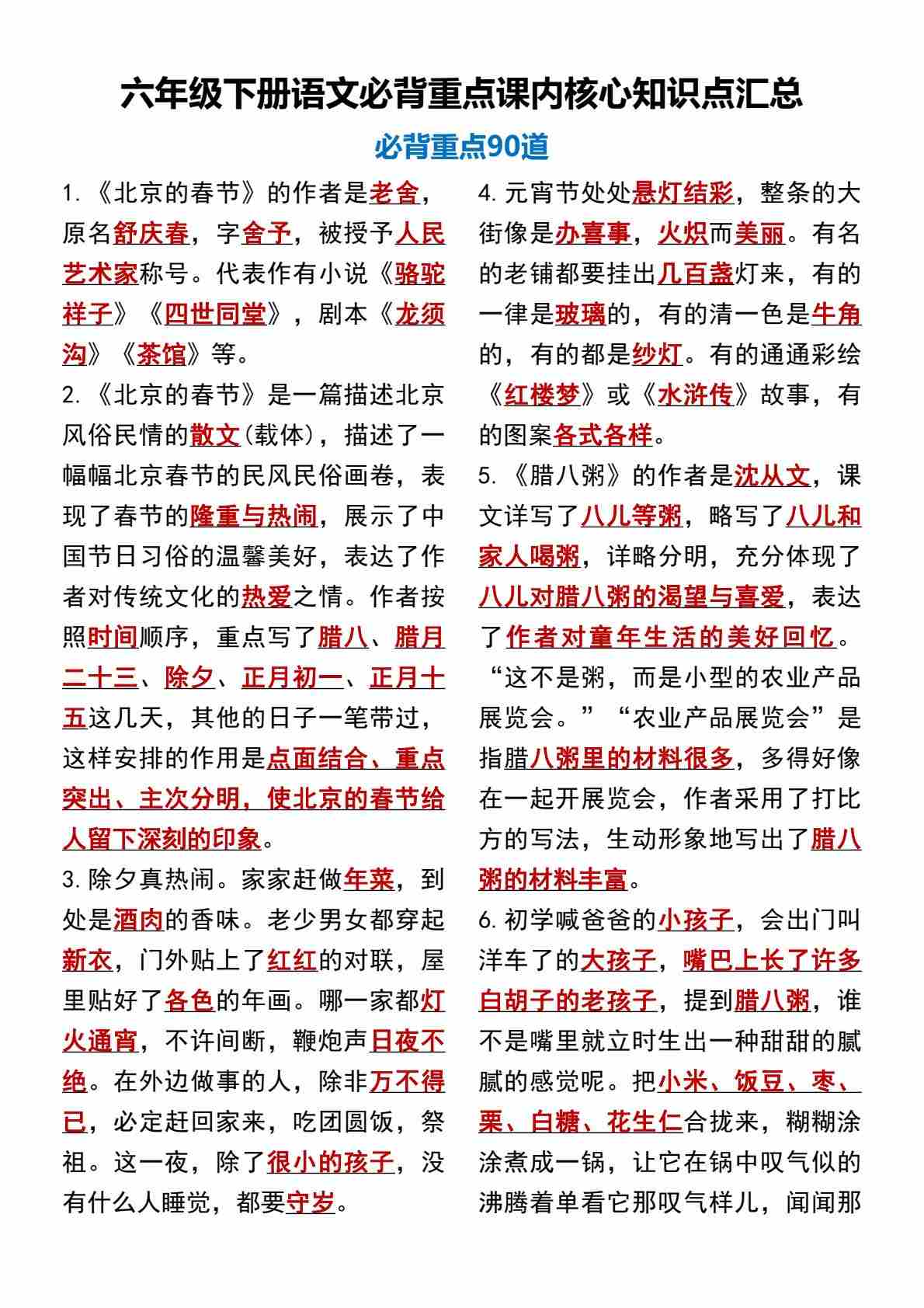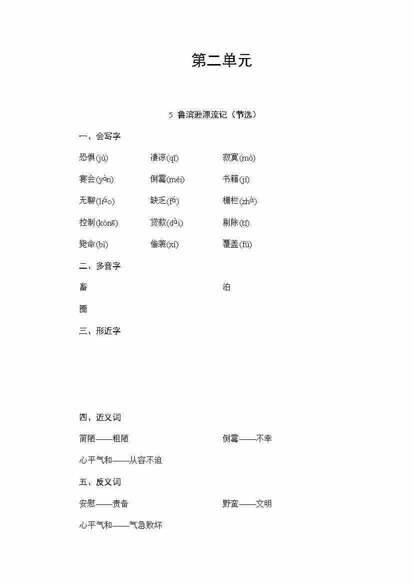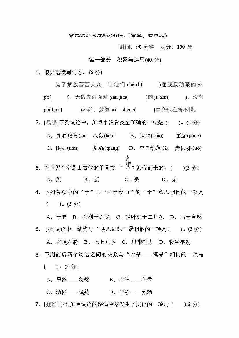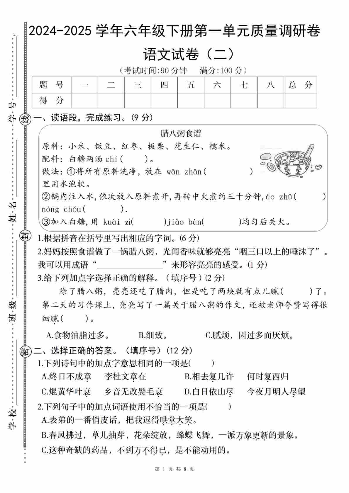 【2024-2025学年第一单元质量调研卷(二)六下语文