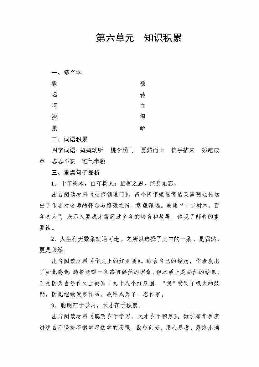 【2024-2025学年第二单元教学质量调研卷(一)】六下语文