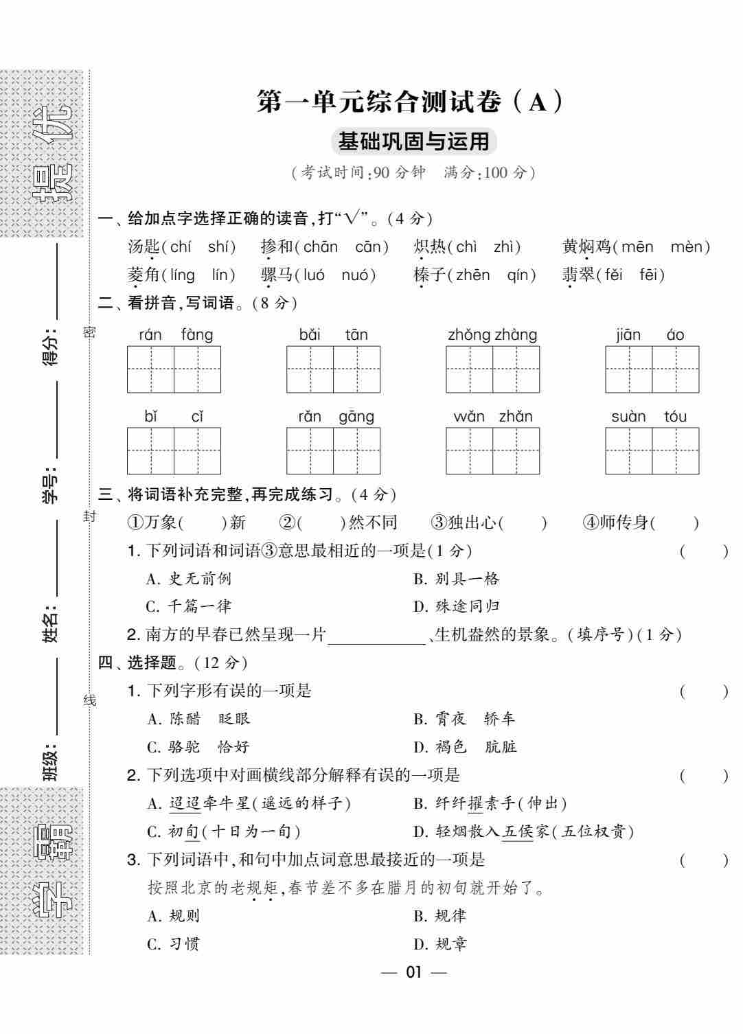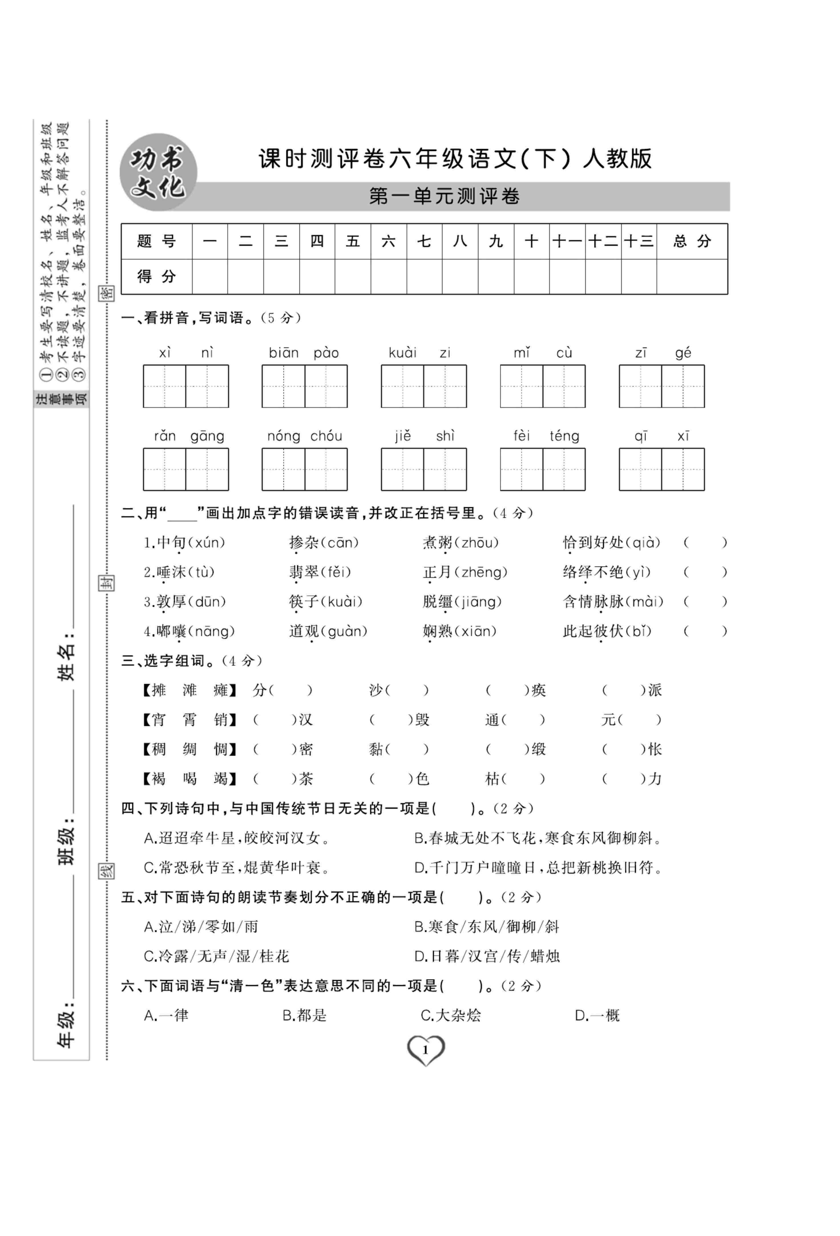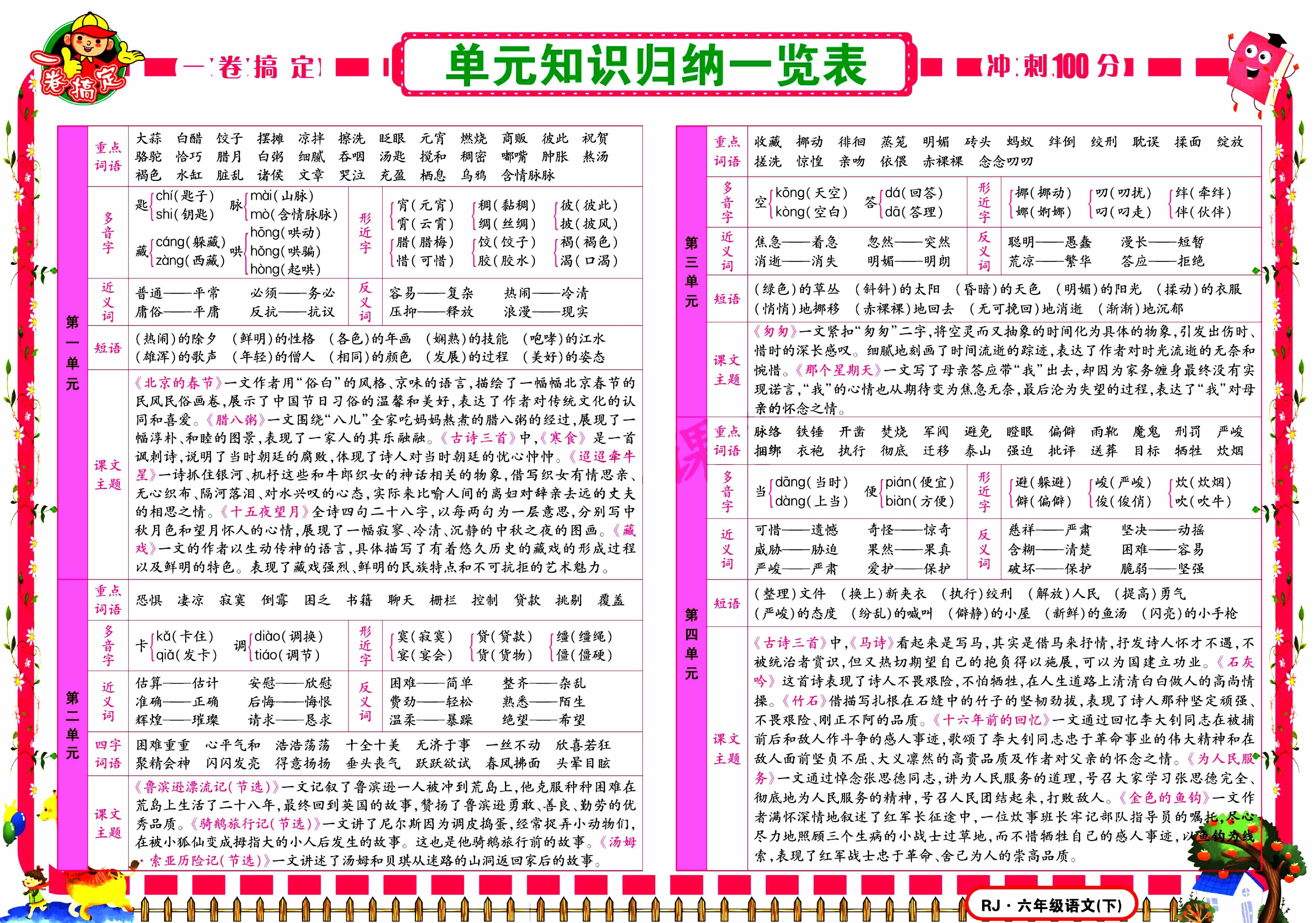 【实验班期末闯关必刷卷(8省8套最新期末真卷)】六下语文