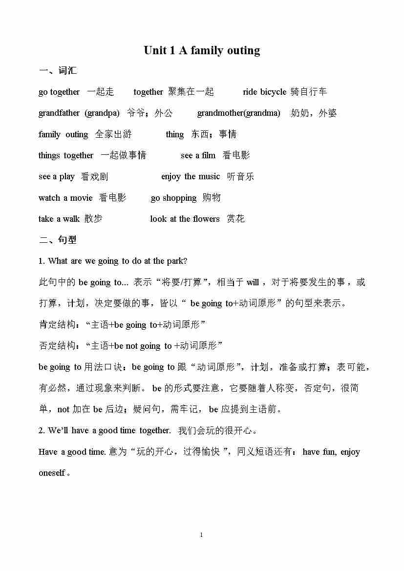 Unit 1 A family outing