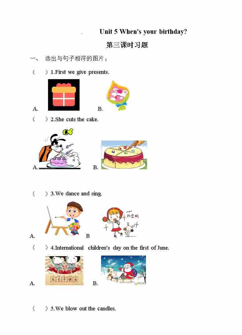五年级下册英语一课一练-Unit 5When'syourbirthday 第三课时 湘少版三起(word版,含答案)