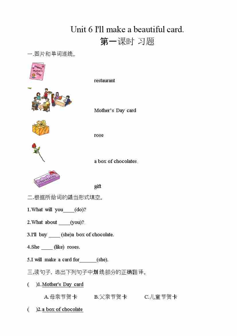五年级下册英语一课一练-Unit 6 I'll make a beautiful card 第一课时 湘少版三起(word版,含答案)