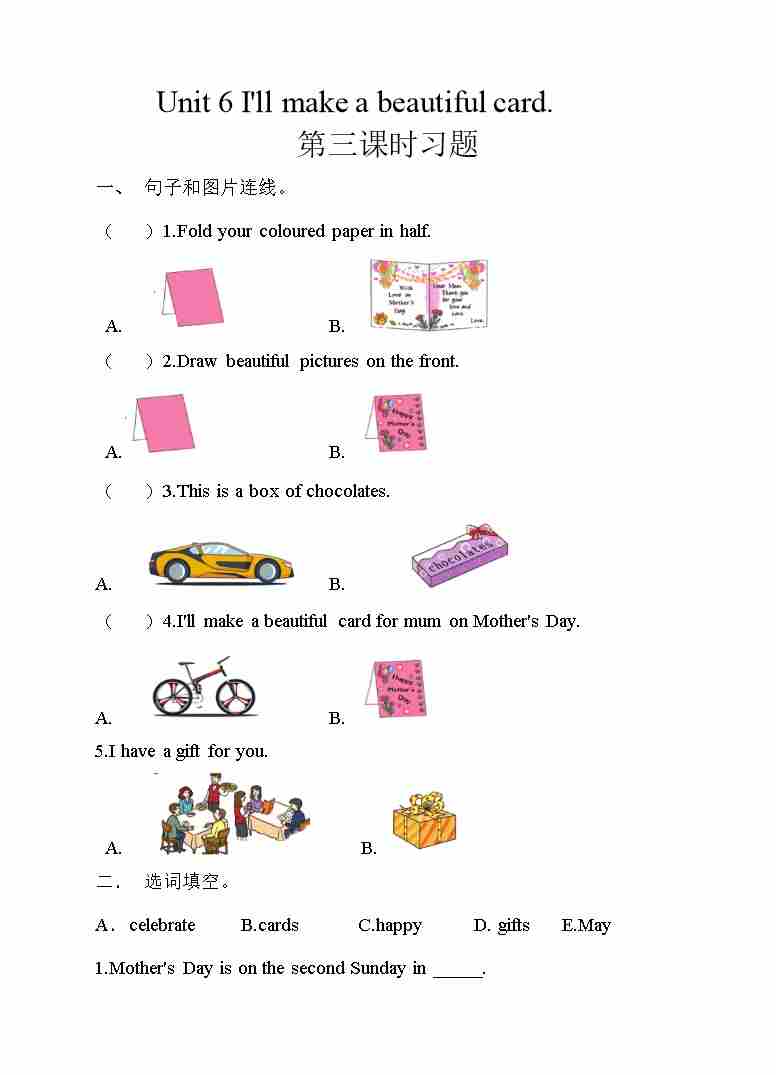 五年级下册英语一课一练-Unit 6 I'll make a beautiful card 第三课时 湘少版三起(word版,含答案)