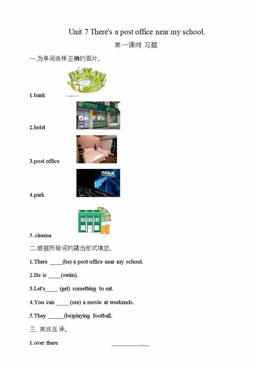 五年级下册英语一课一练-Unit 7 There is a post office near my school 第一课时 湘少版三起(word版,含答案)