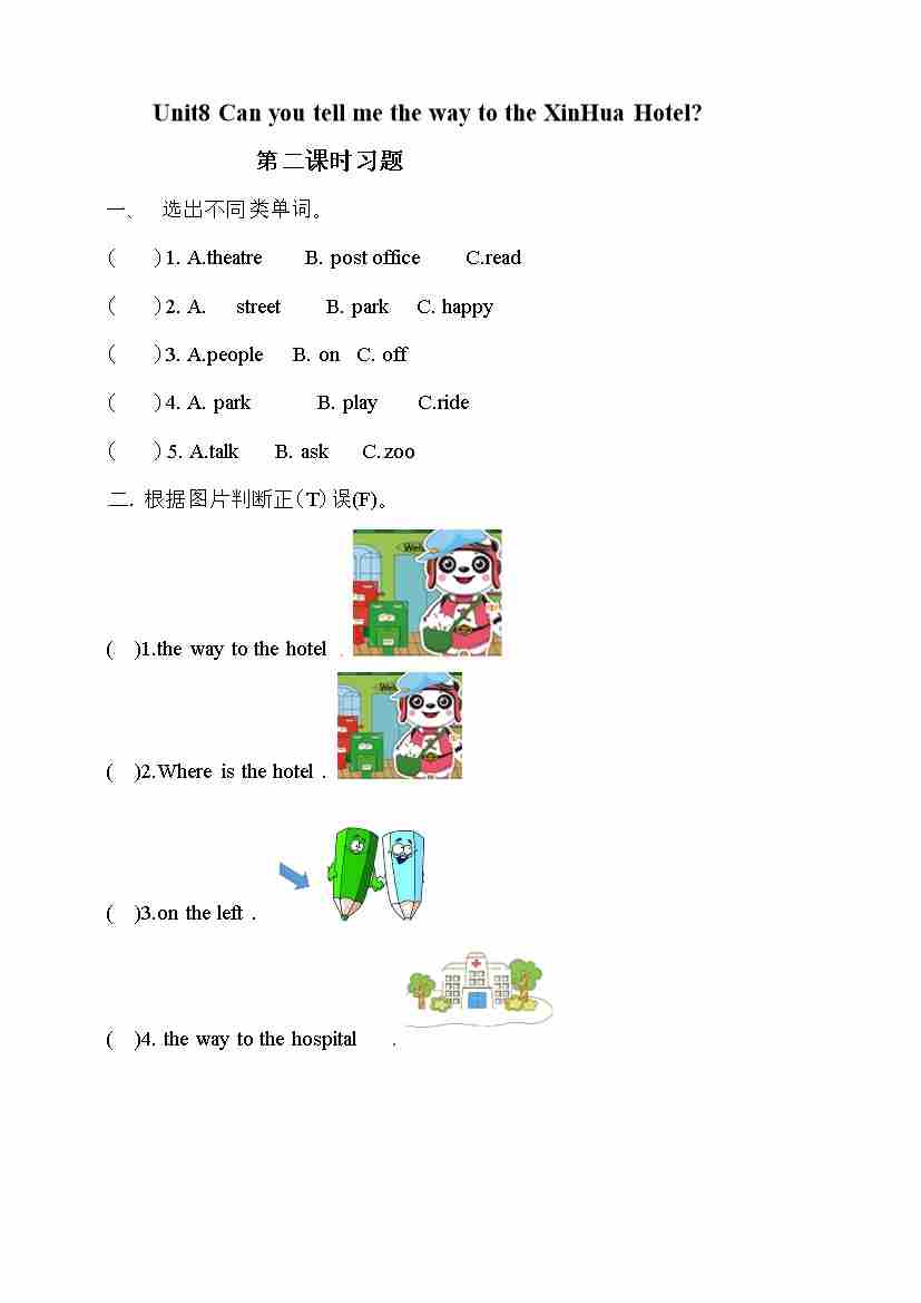 五年级下册英语一课一练-Unit 8 Can you tell me the way to theXinhua hotel 第三课时 湘少版三起(word版,含答案)