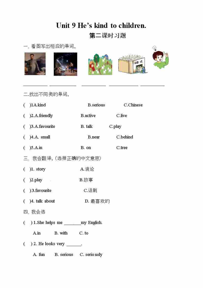 五年级下册英语一课一练-Unit 9 He's kind to Children 第二课时 湘少版三起(word版,含答案)