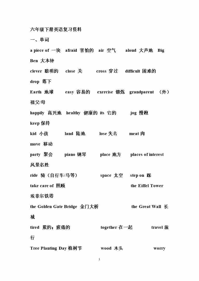湘少版六年级下册英语复习资料