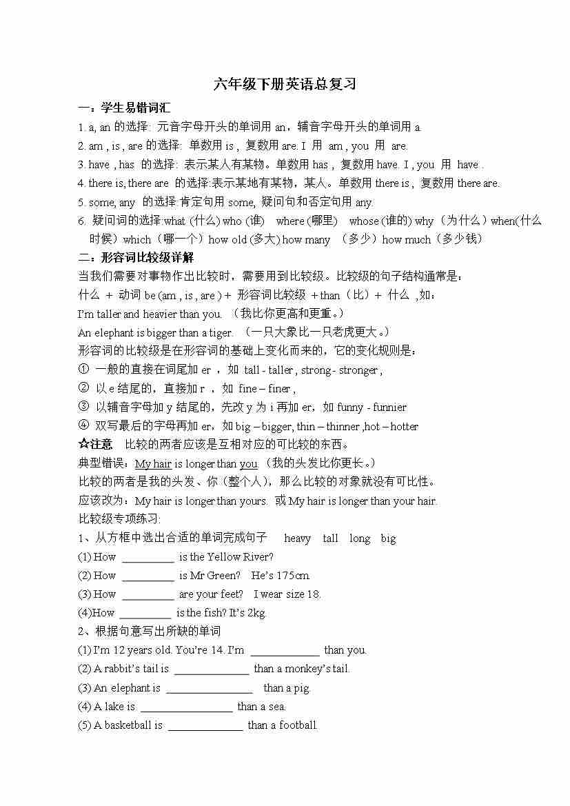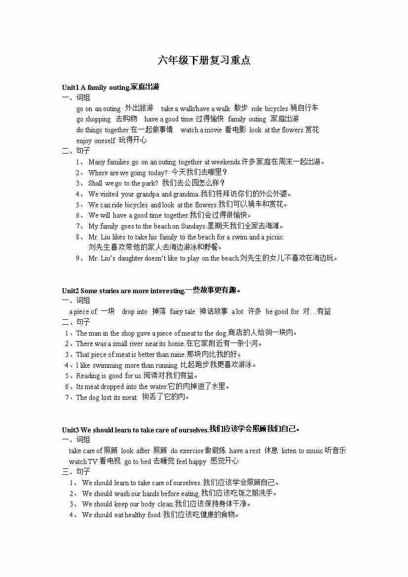 湘少版六年级下册英语复习重点