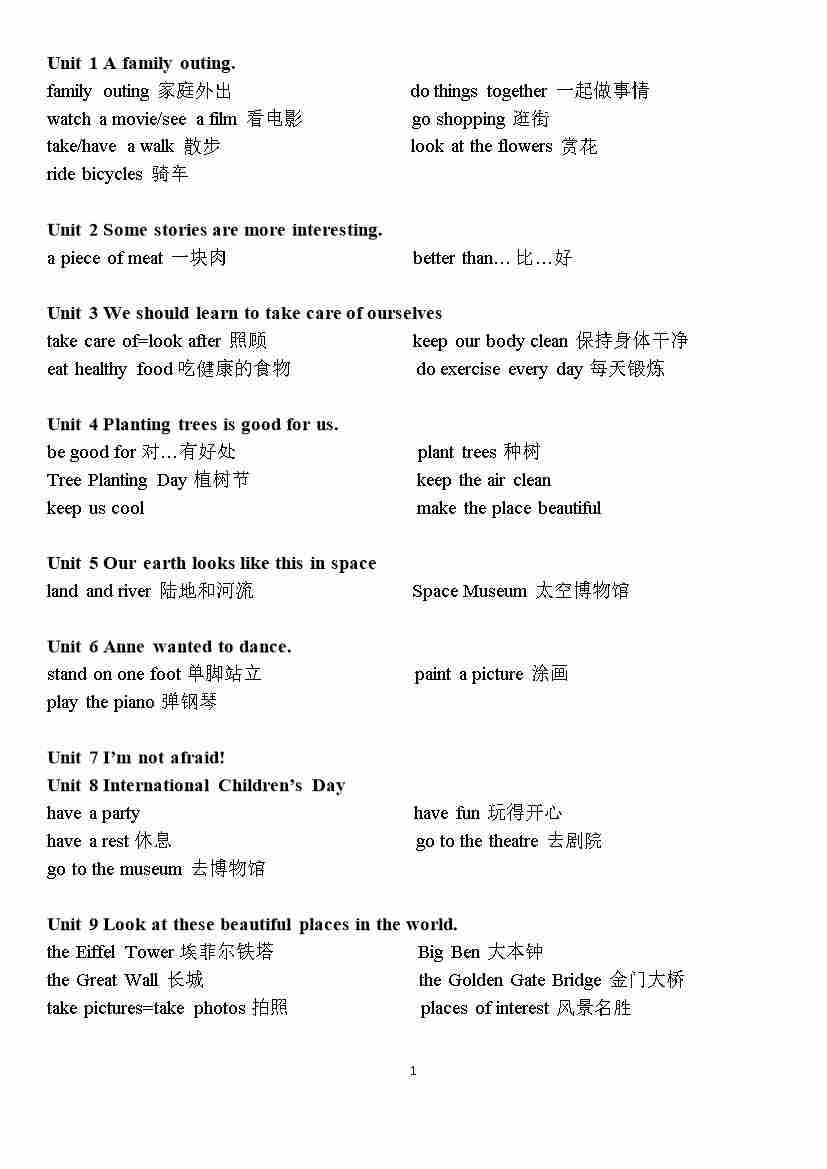 湘少版六年级下册英语词组