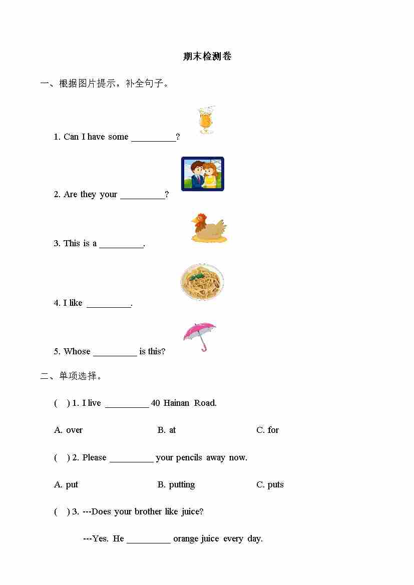 Unit 2 Lesson 8(分层作业)英语人教精通版五年级上册