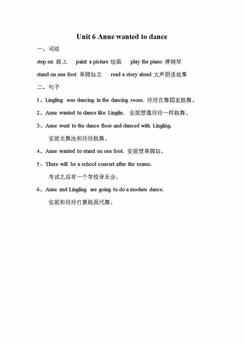 Unit 6 Anne wanted to dance