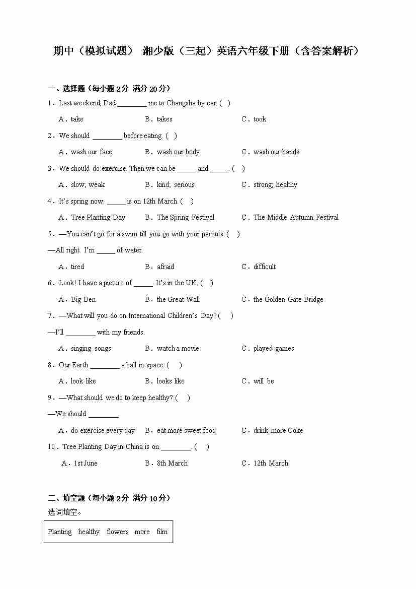 期中(模拟试题)湘少版