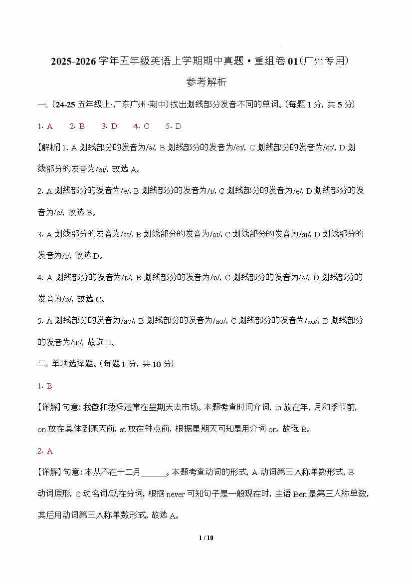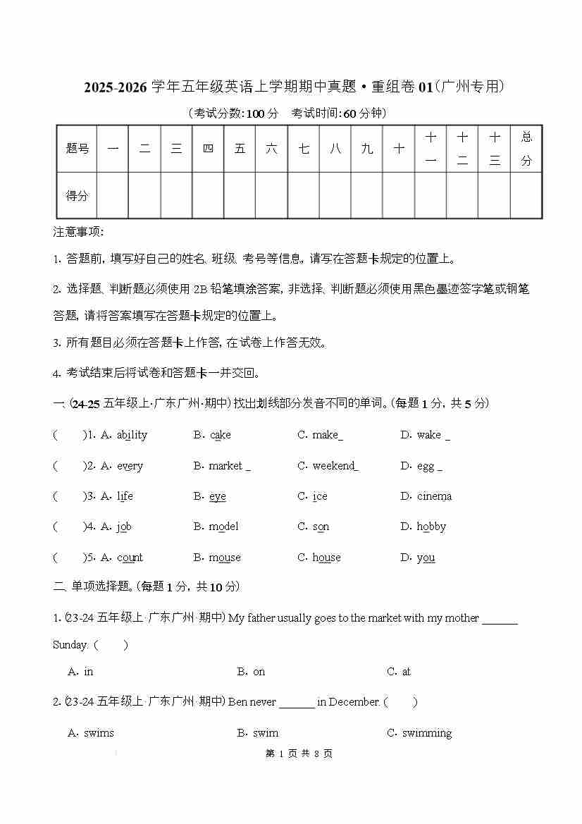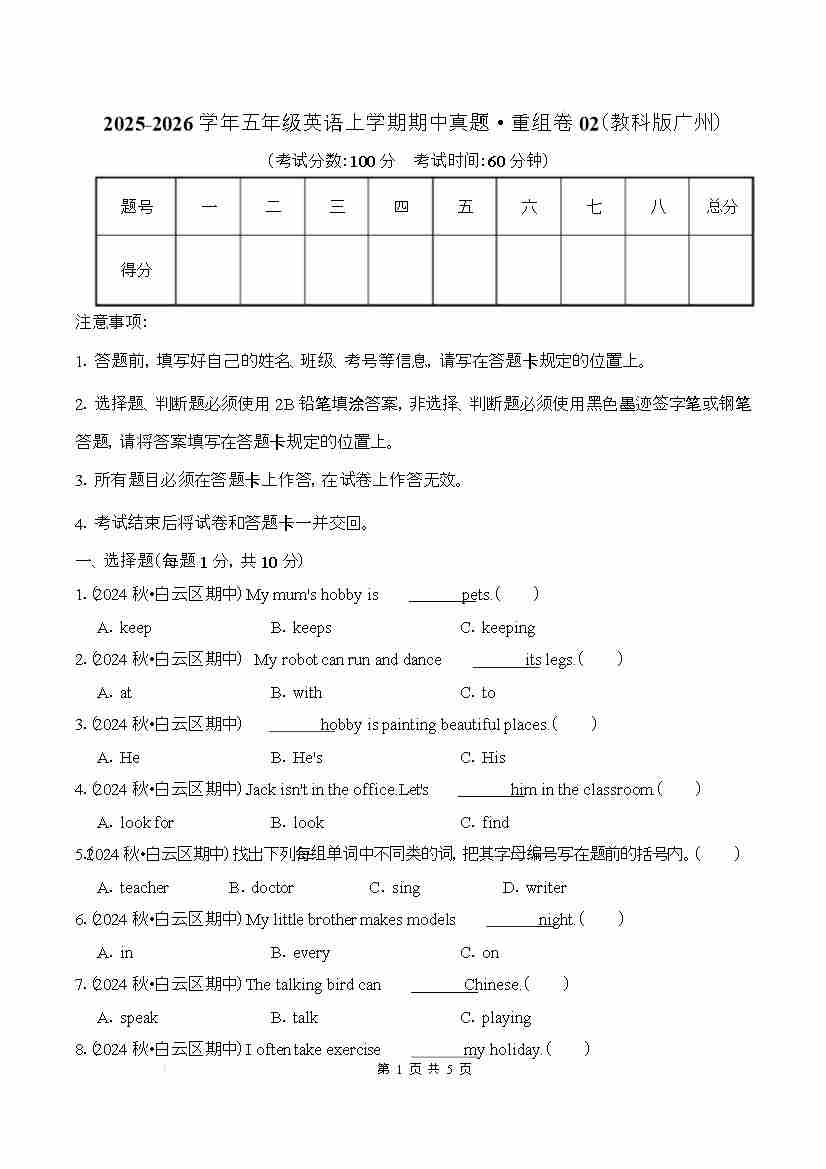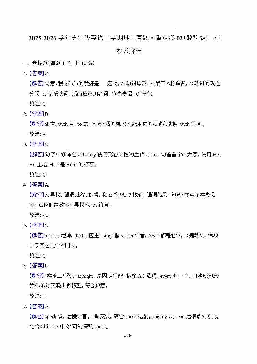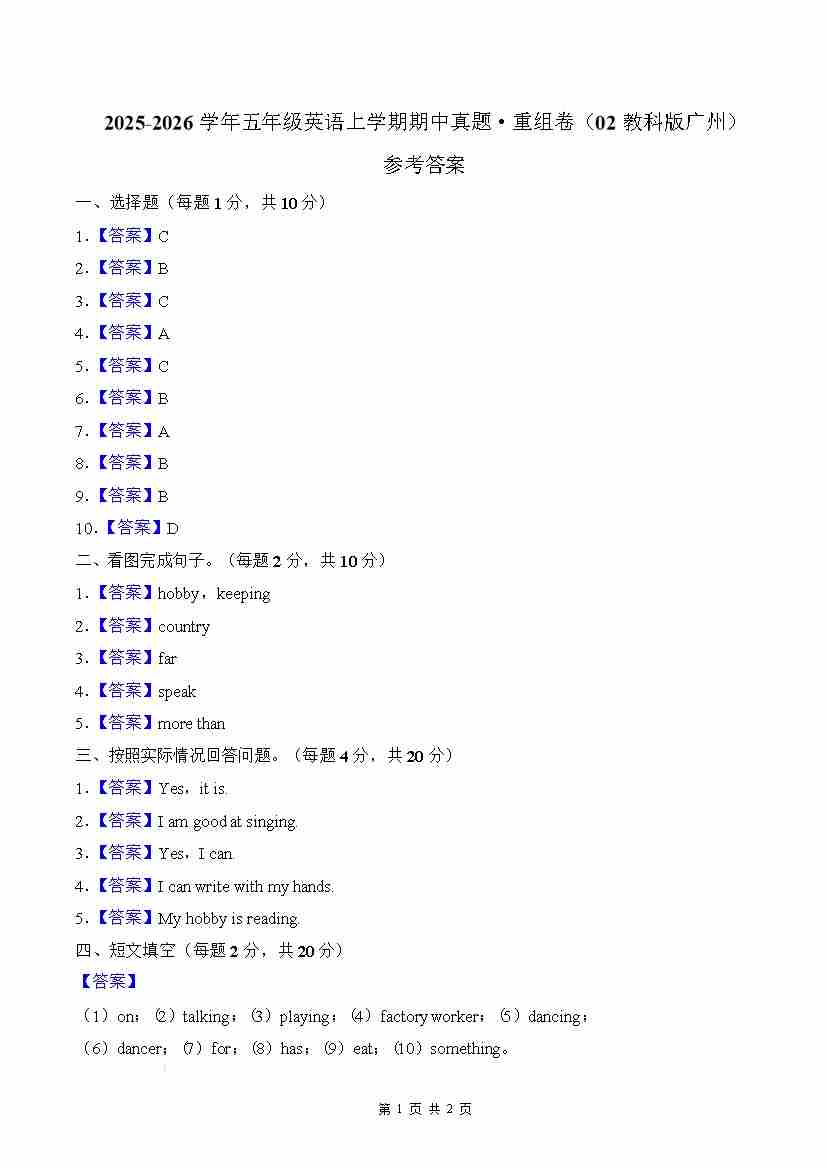 【精品】五年级上册英语期中预测题(C卷)人教精通版(word版,含答案解析)