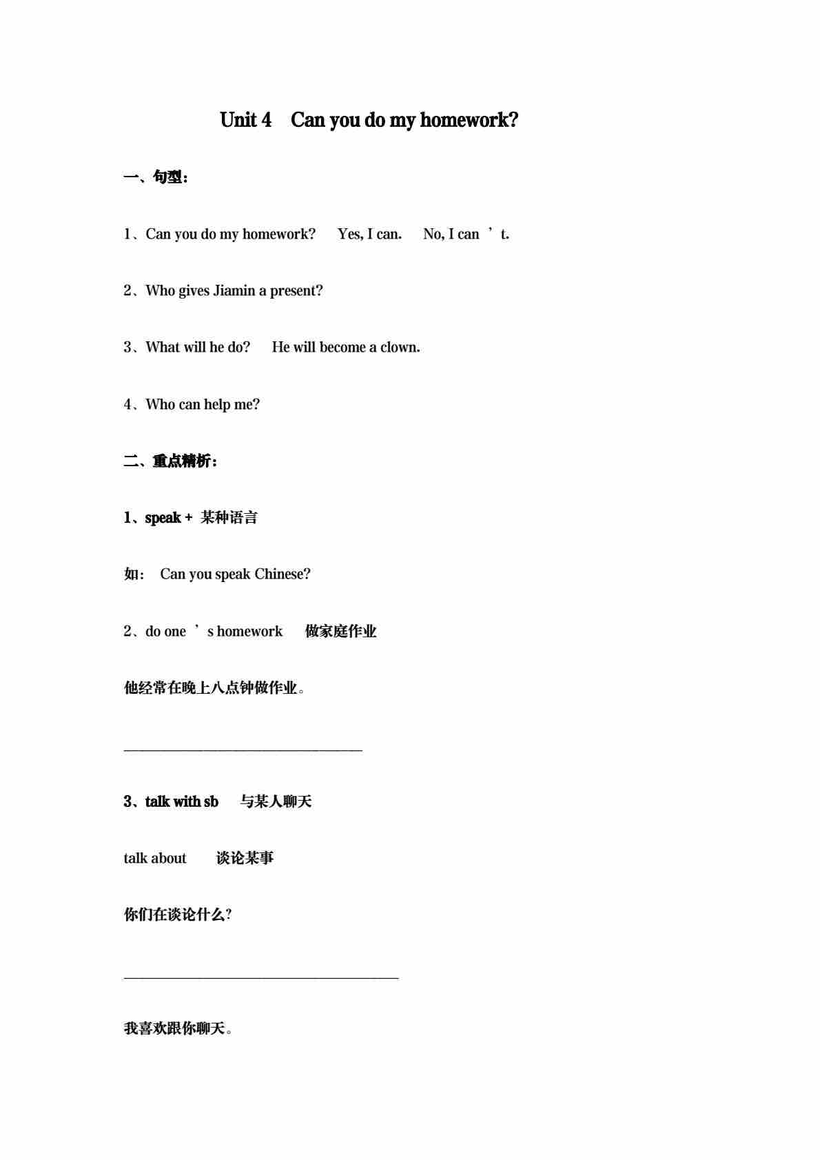 五年级(上)英语 Unit 4 Can you do my homework基础练习