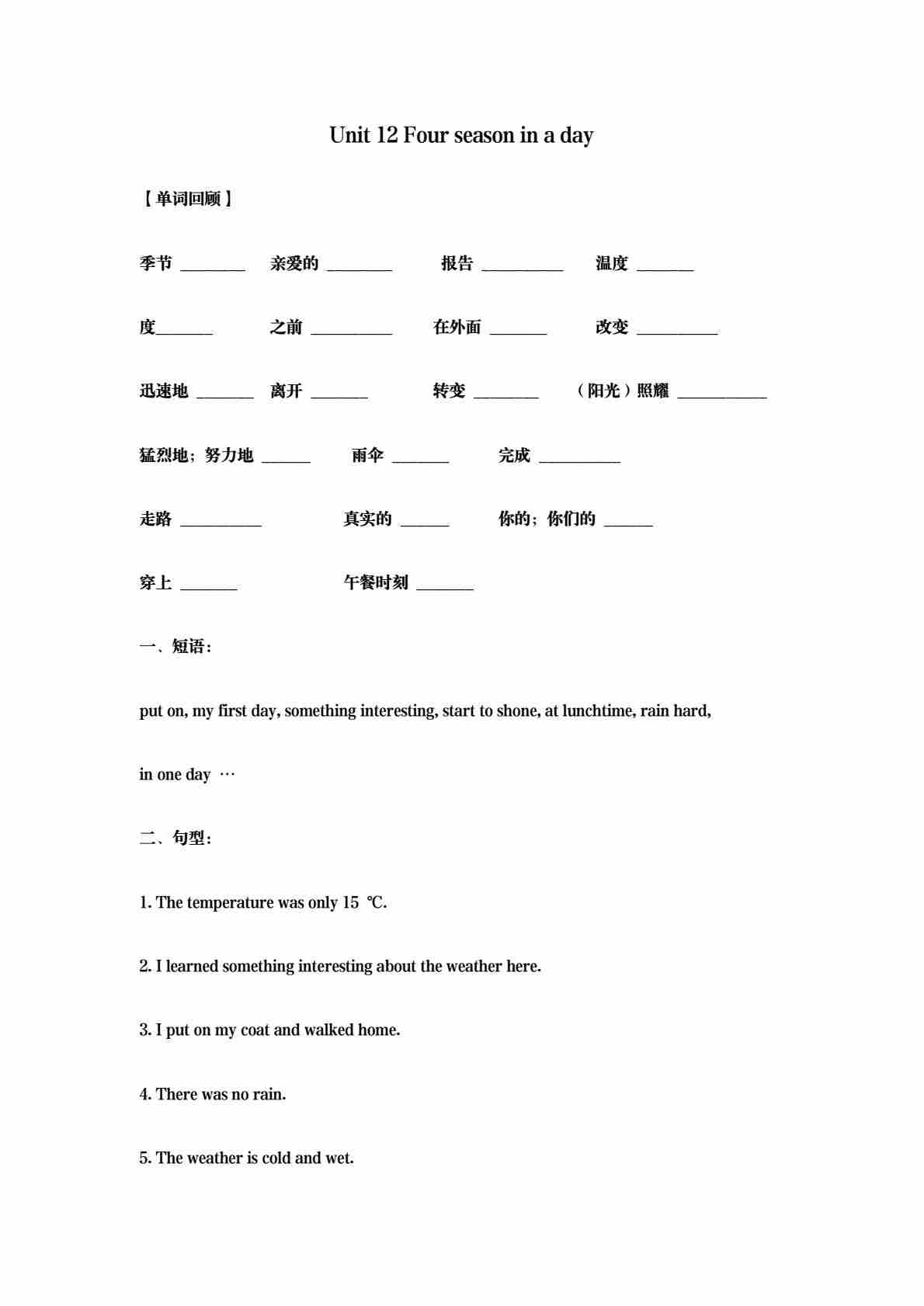 五年级(上)英语 Unit12 Four season in a day基础练习