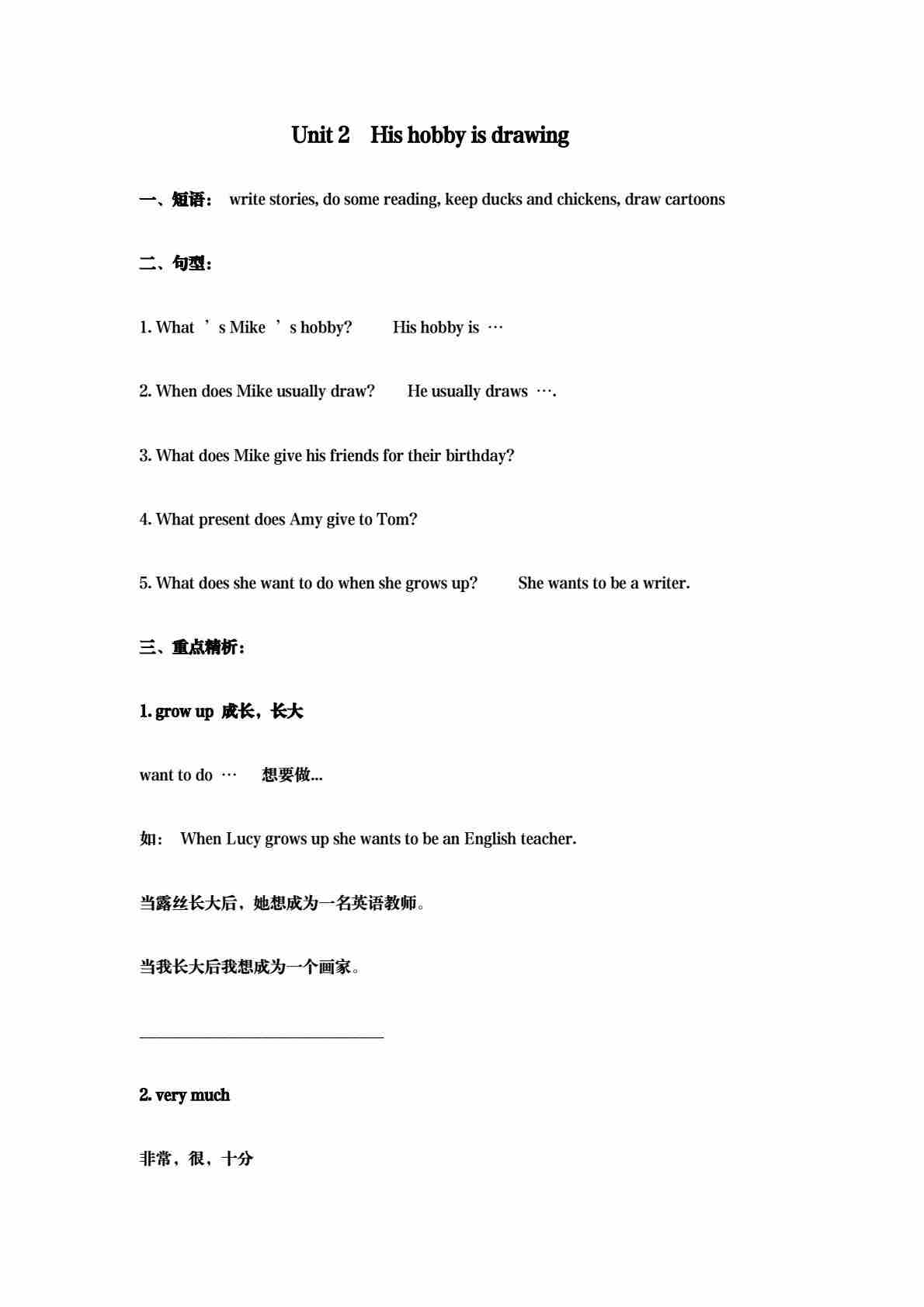 五年级(上)英语 Unit2 His hobby is drawing基础练习