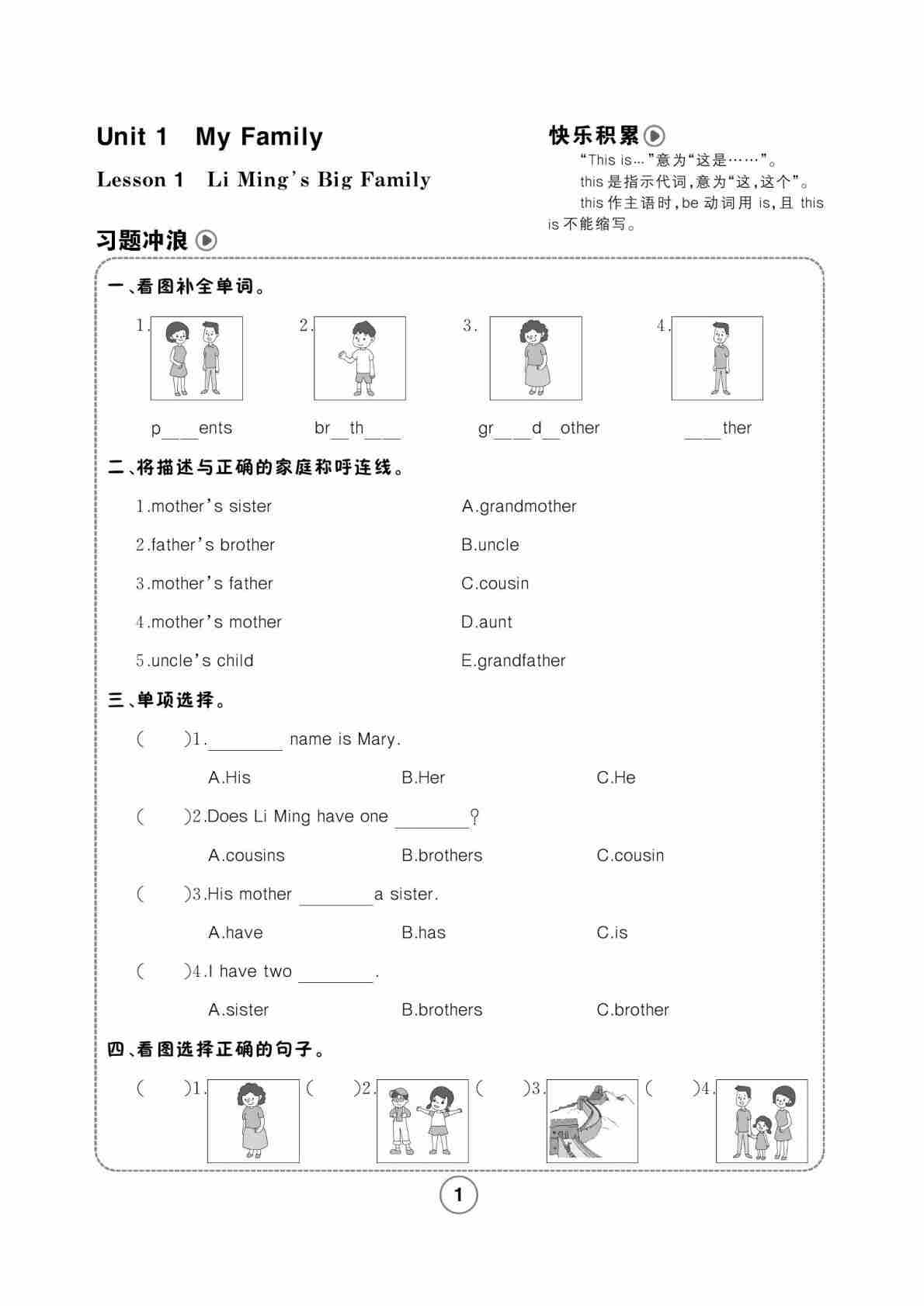 五年级(上)英语第一单元测试卷《冀教版》