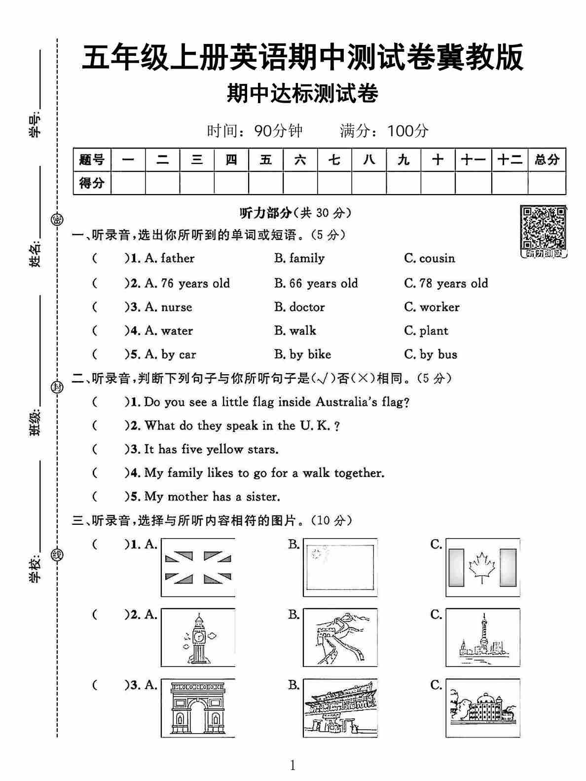 五年级(上)英语 期中达标测评卷《冀教版》77