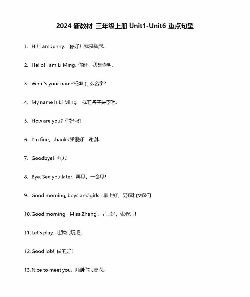 Unit1-Unit6重点句型(讲义)-2024-2025学年冀教版(三起)