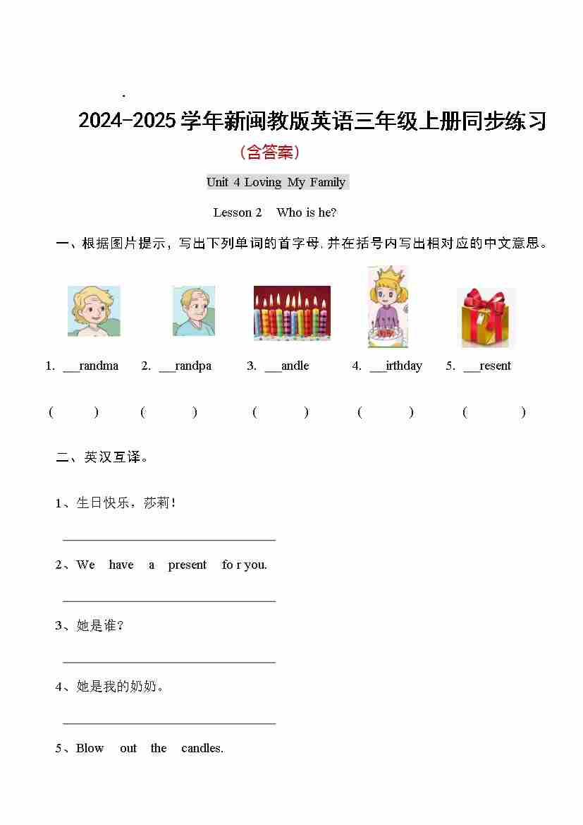 Unit 4 Loving My Family Lesson 2 Who is he(同步练)-2024-2025学年闽教版(2024)英语三年级上册