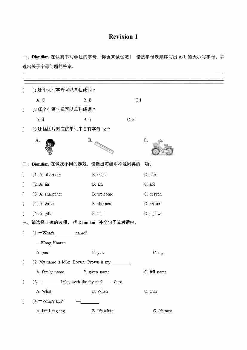 Revision 1-2024-2025学年三年级英语上册课时练习(人教精通版)