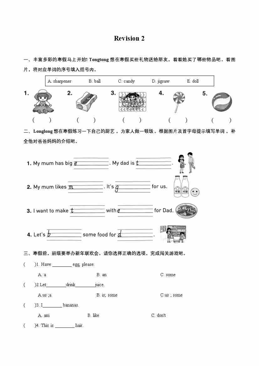 Revision 2-2024-2025学年三年级英语上册课时练习(人教精通版)