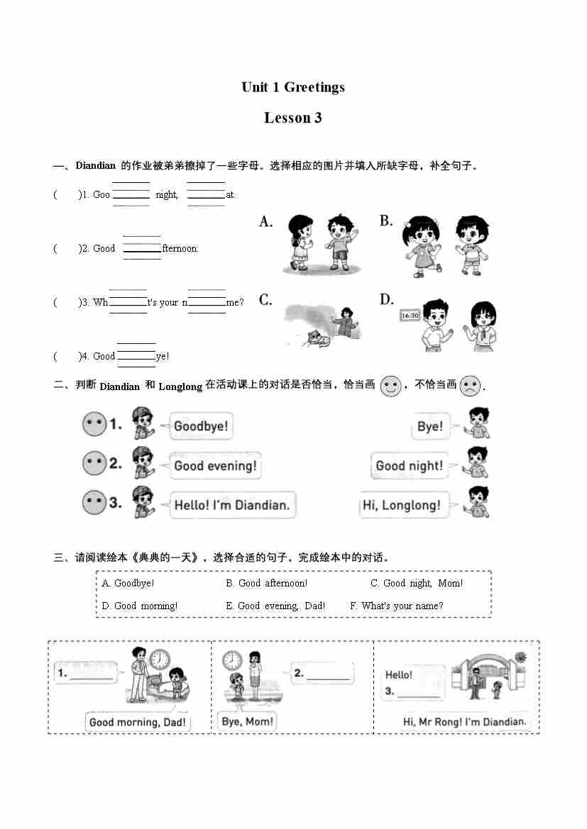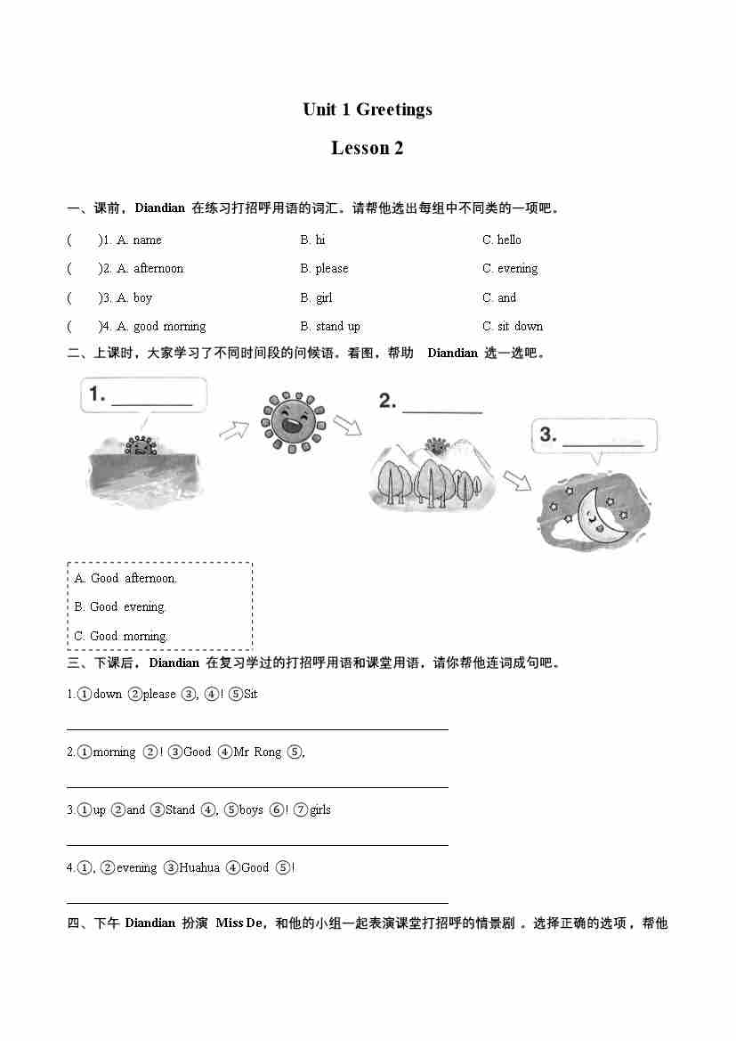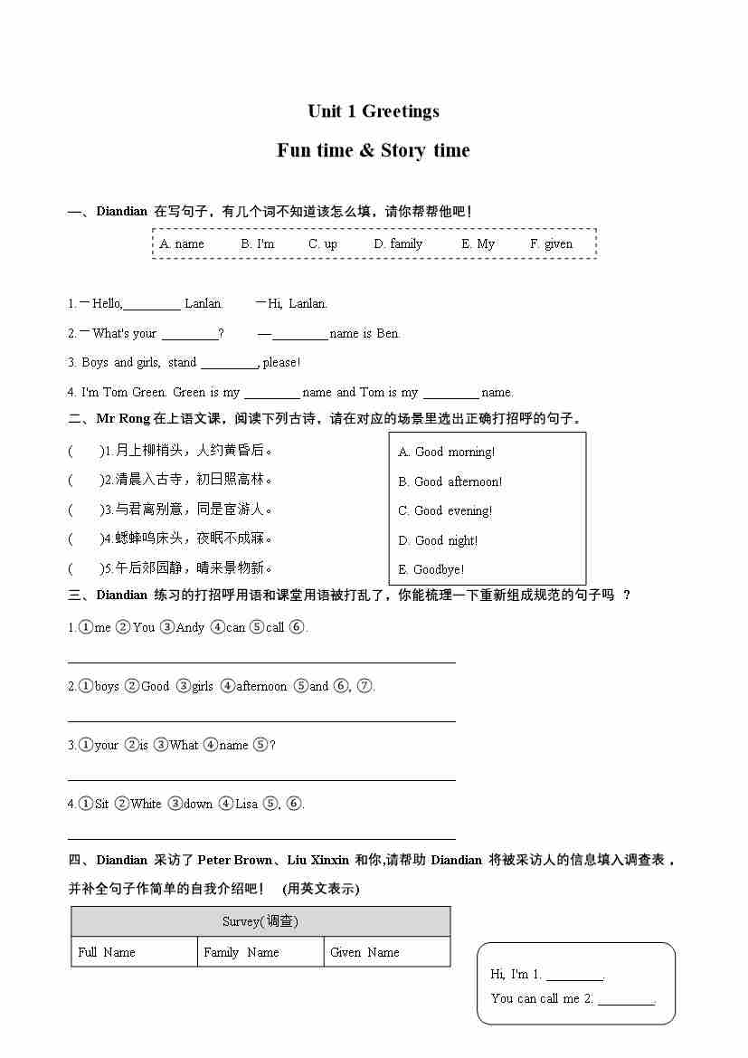 Unit 1 Greetings Fun time & Story time-2024-2025学年三年级英语上册课时练习(人教精通版)