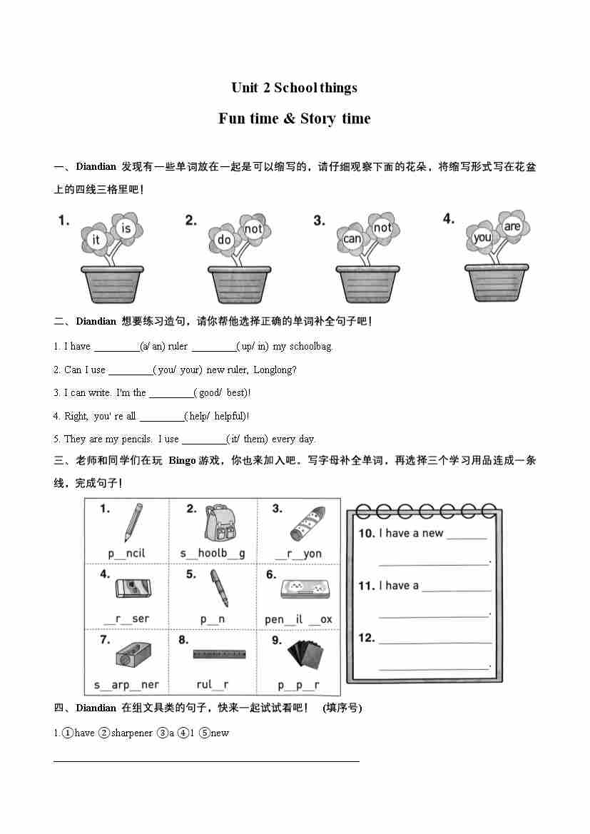 Unit 2 School things Fun time & Story time-2024-2025学年三年级英语上册课时练习(人教精通版)