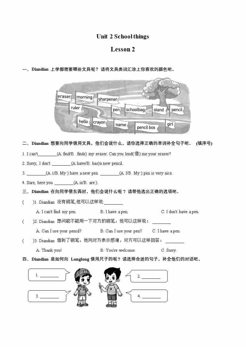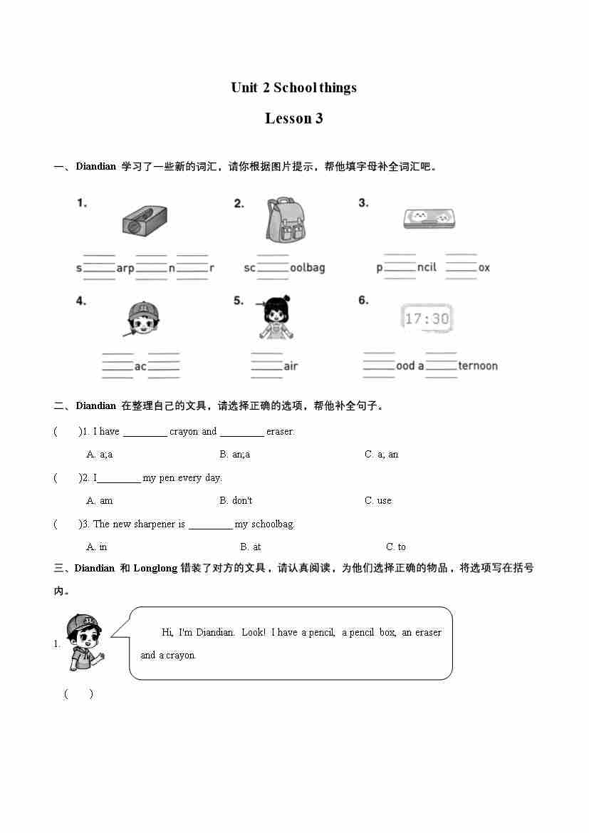 Unit 2 School things Lesson 2-2024-2025学年三年级英语上册课时练习(人教精通版)
