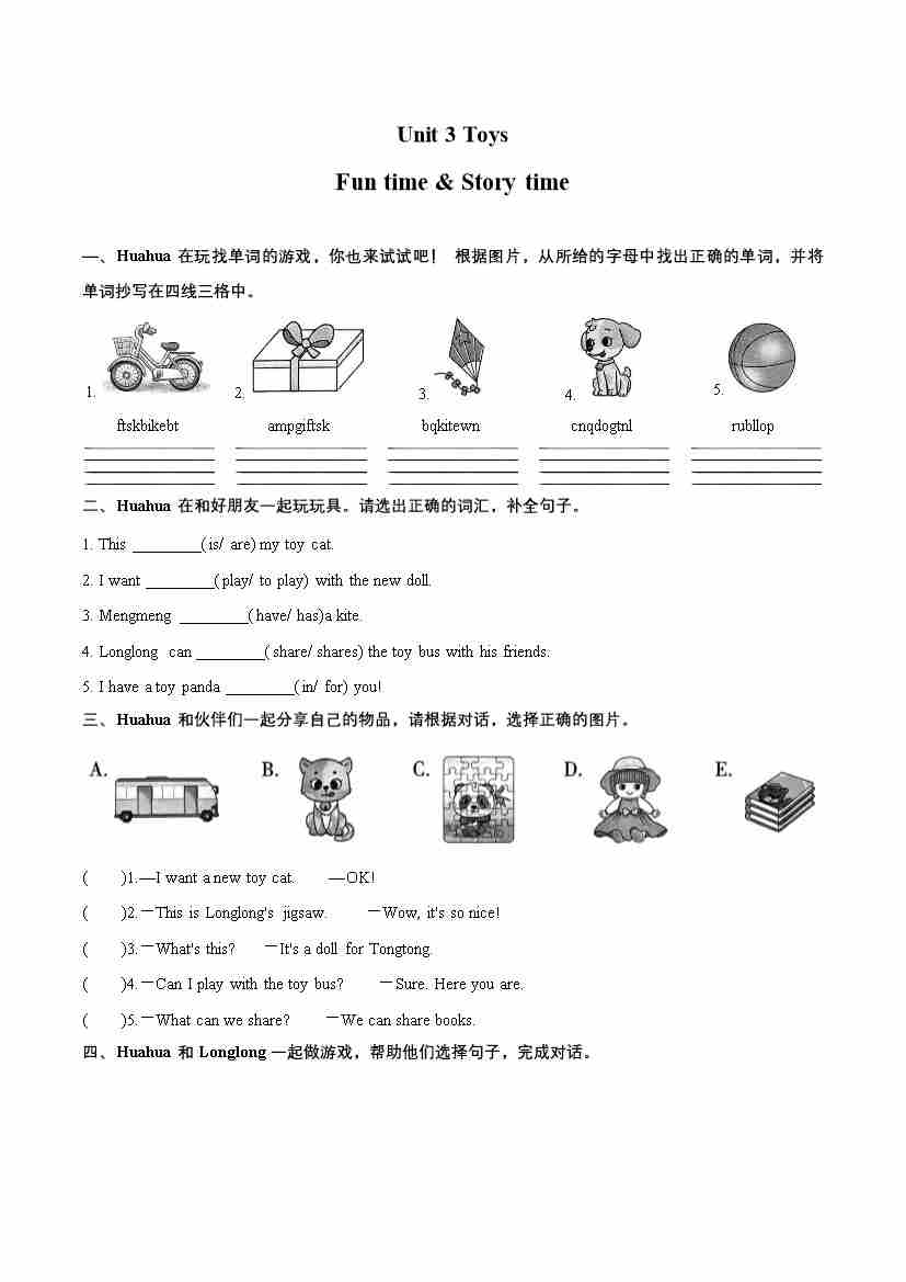 Unit 3 Toys Fun time & Story time-2024-2025学年三年级英语上册课时练习(人教精通版)