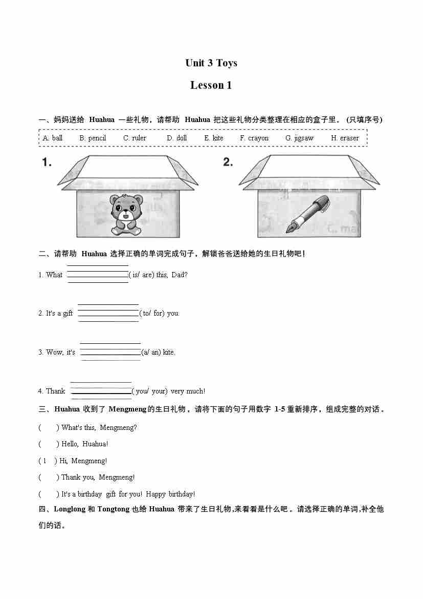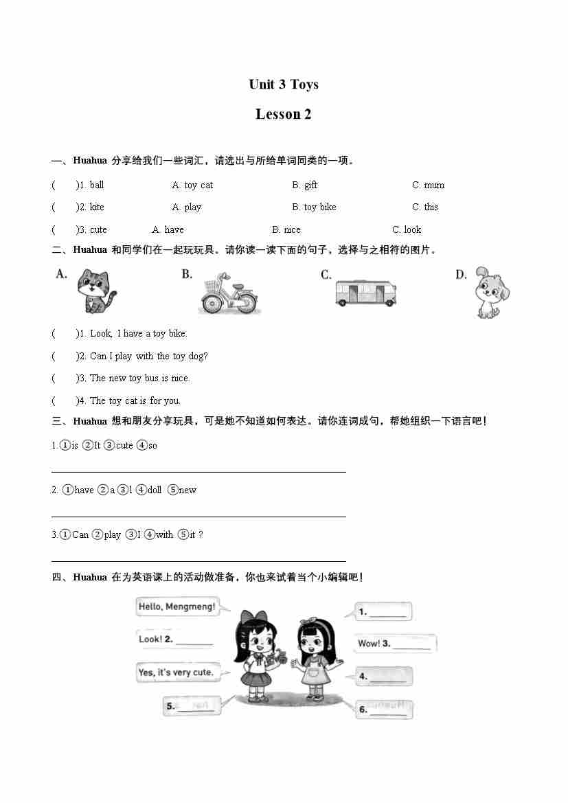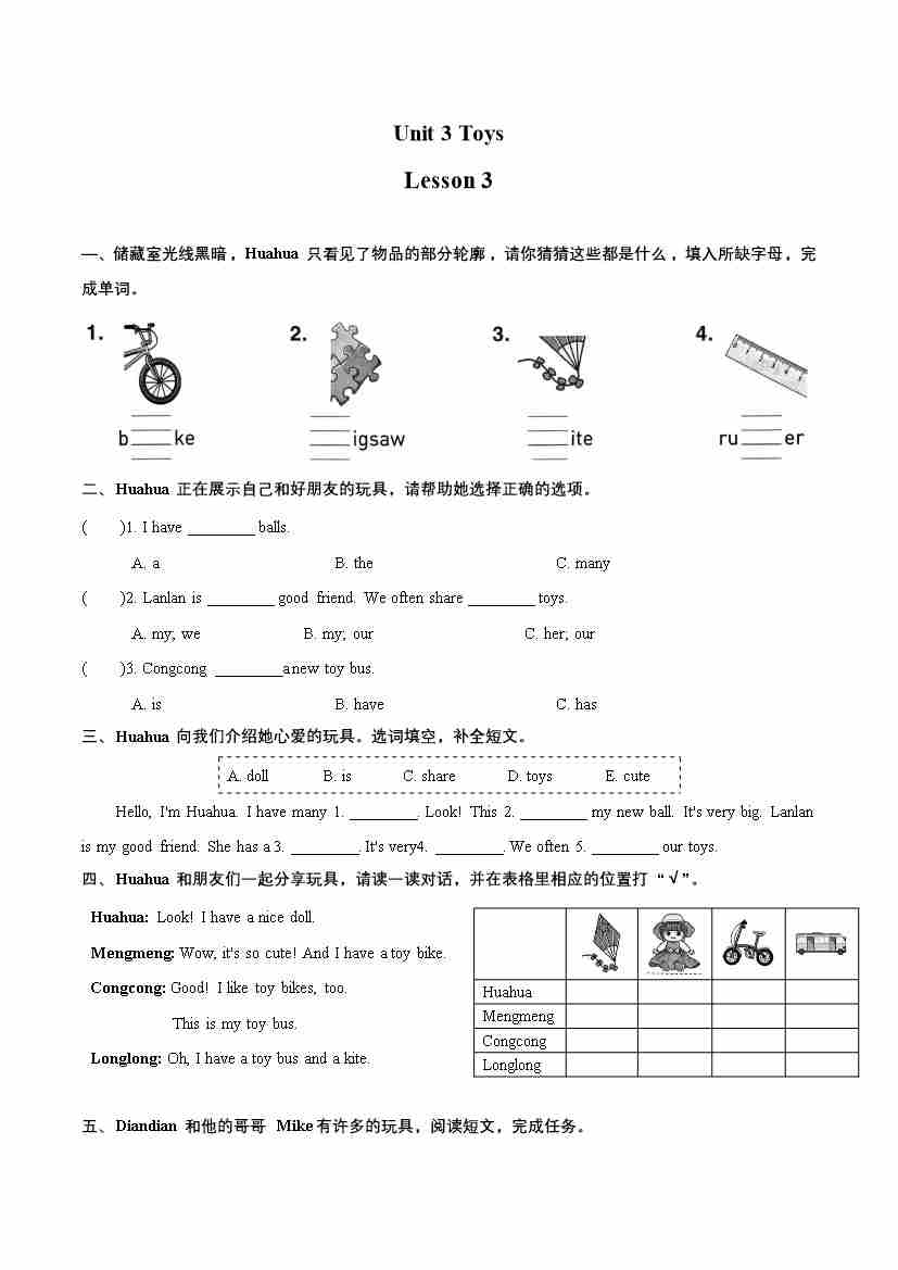 Unit 3 Toys Lesson 3-2024-2025学年三年级英语上册课时练习(人教精通版)