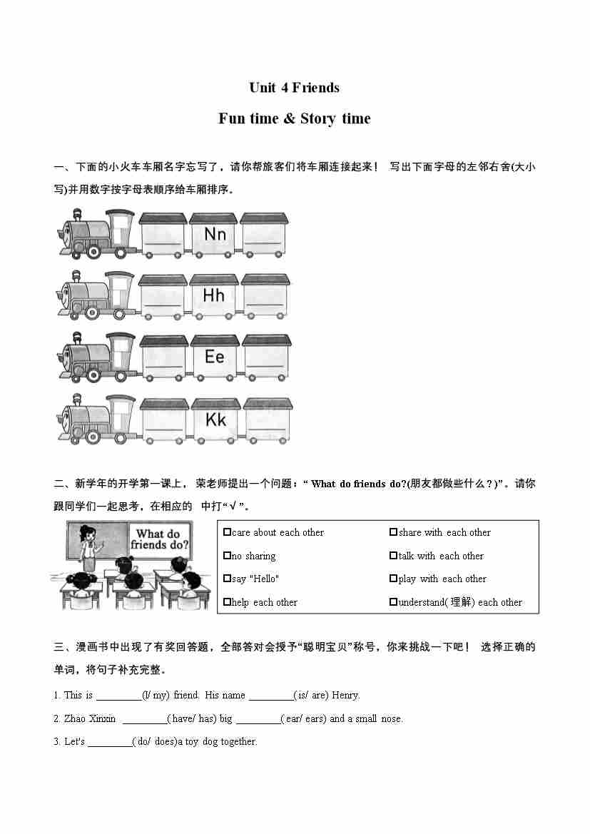 Unit 4 Friends Fun time & Story time-2024-2025学年三年级英语上册课时练习(人教精通版)