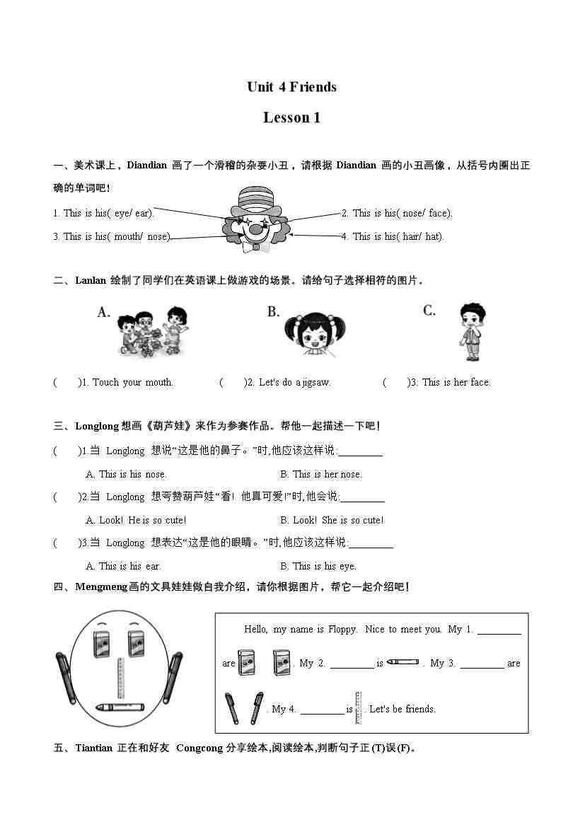 Unit 4 Friends Lesson 1-2024-2025学年三年级英语上册课时练习(人教精通版)