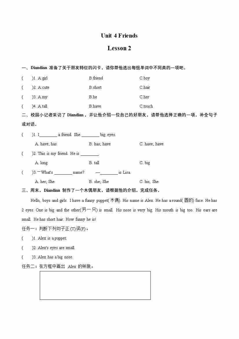 Unit 4 Friends Lesson 2-2024-2025学年三年级英语上册课时练习(人教精通版)