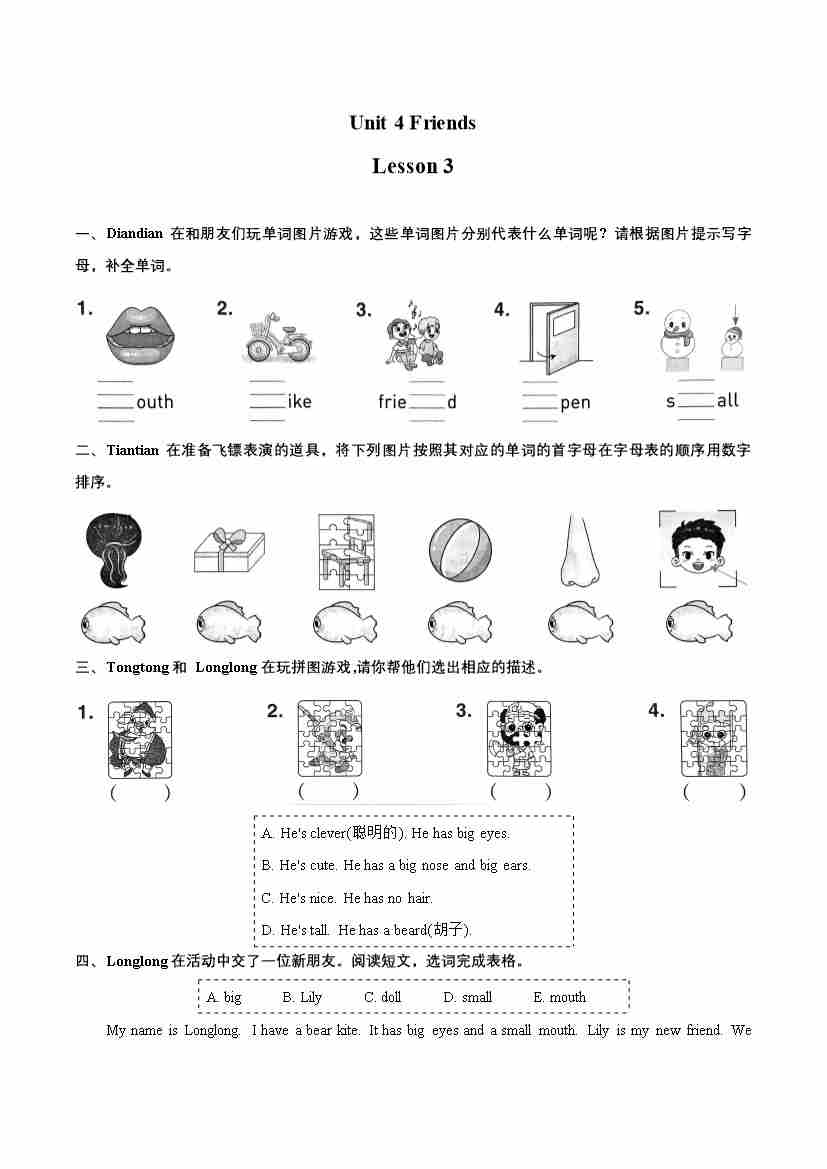 Unit 4 Friends Lesson 3-2024-2025学年三年级英语上册课时练习(人教精通版)