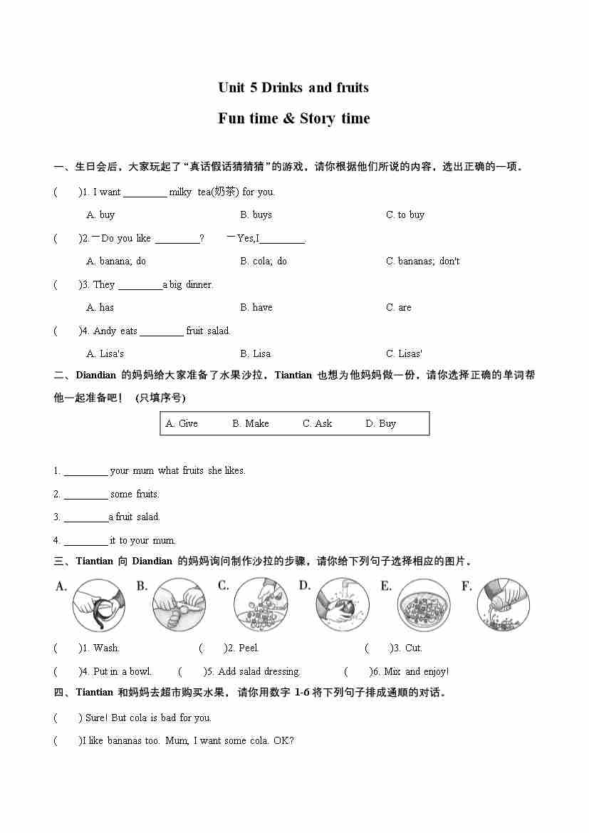 Unit 5 Drinks and fruits Fun time & Story time-2024-2025学年三年级英语上册课时练习(人教精通版)
