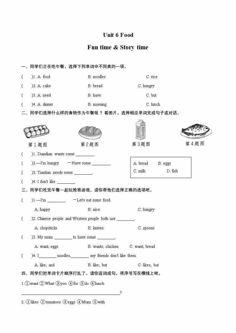 Unit 6 Food Fun time & Story time-2024-2025学年三年级英语上册课时练习(人教精通版)