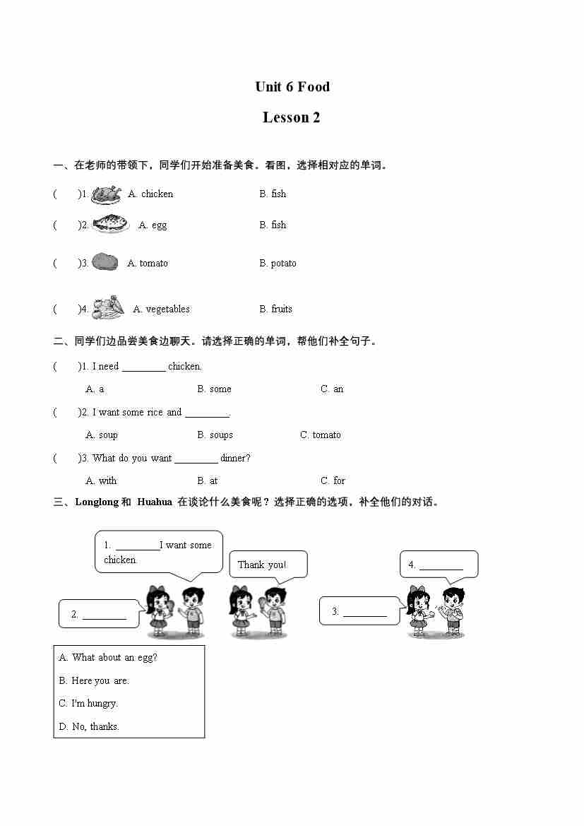 Unit 6 Food Lesson 2-2024-2025学年三年级英语上册课时练习(人教精通版)