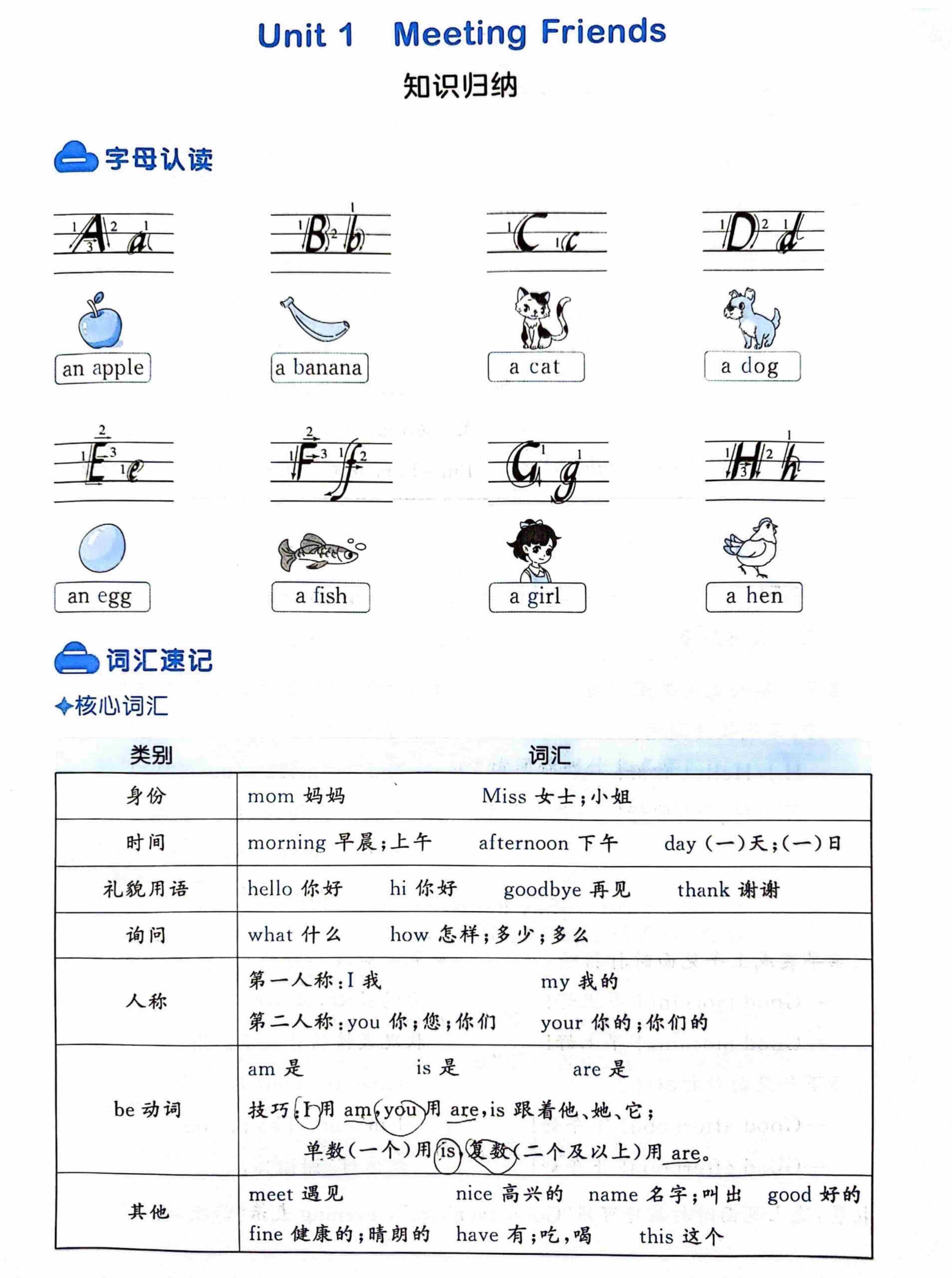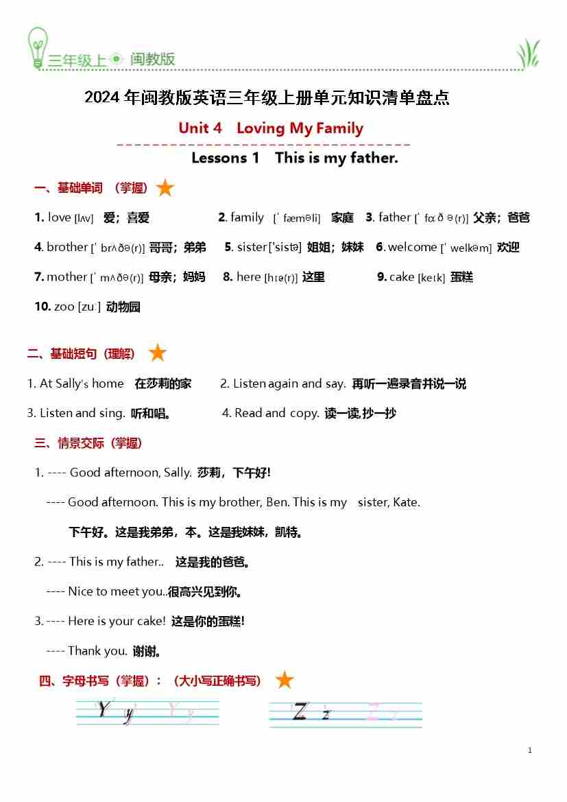 Unit 4 Loving My Family (知识清单)-2024-2025学年闽教版(2024)英语三年级上册
